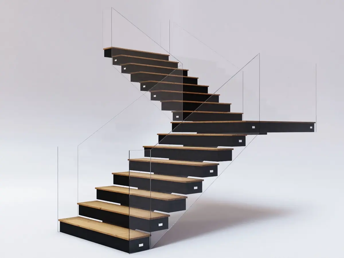 THIS MODEL CONTAINS:4 diferent staircases made of wood, painted black concrete and glass, with steel pins-L shape stairs-L shape stairs, wall/corner compatible-U shape stairs -U shape stairs, wall/corner compatible