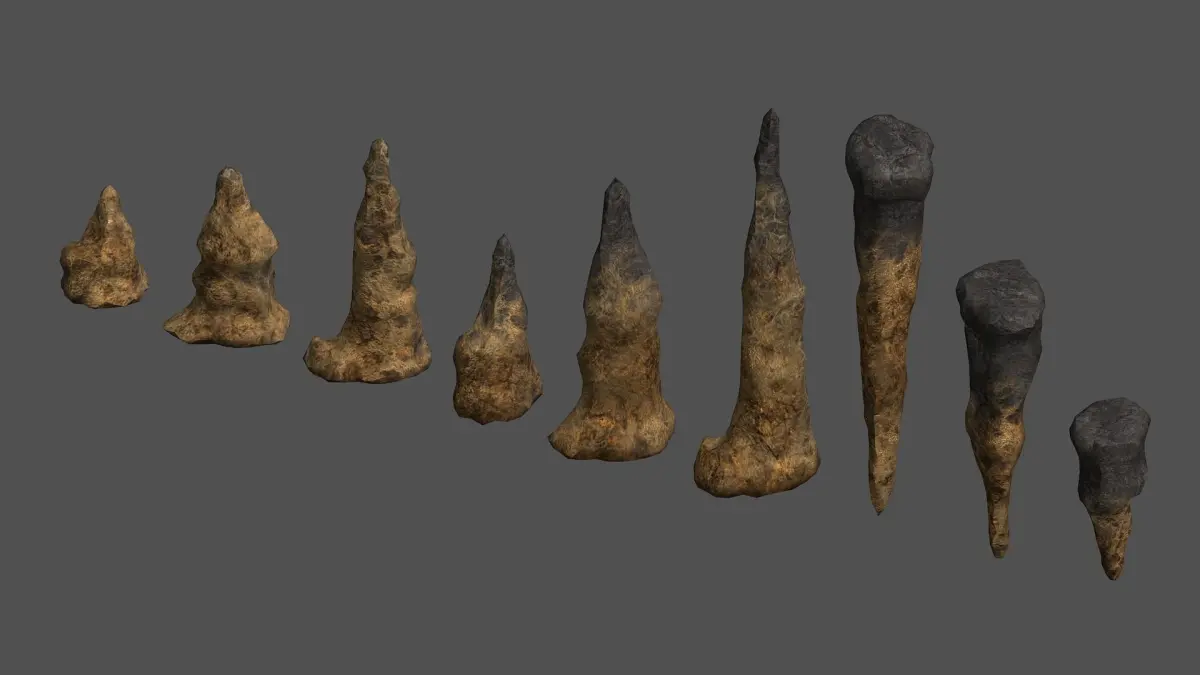 A set of stalagmites I made with Sculptris. The models and base textures for this set are free - have a look at the rest of my models to find them or search for Stalagmite Set.