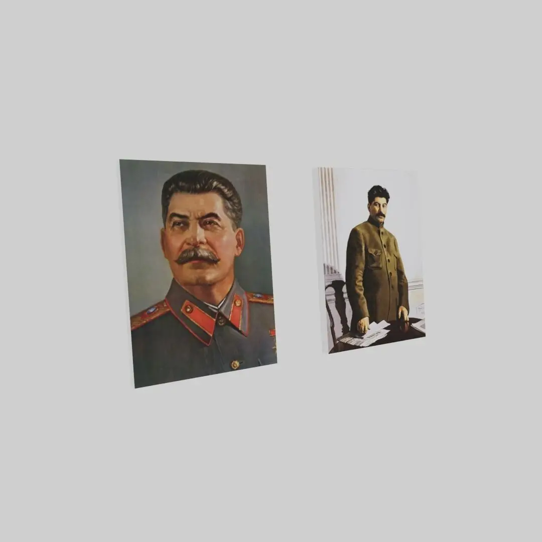 2 paintings of Soviet leader joseph stalin the 2 paintings are diffrent as you see and separated but exported together in each format so when you drop any format to your software the 2 paintings come together separated this 2 painting ready for anything you want created with original pbr material inside substance painter and maya software. You dont need to do anything just drag and drop the model to your software and render and you're done