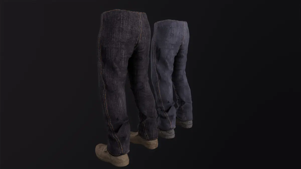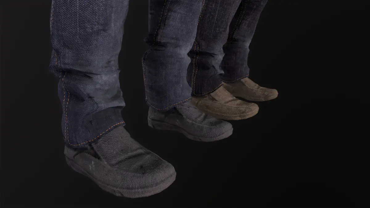- Two colors for pants (Blue and Dark) and Two colors for boots (Dark and brown);