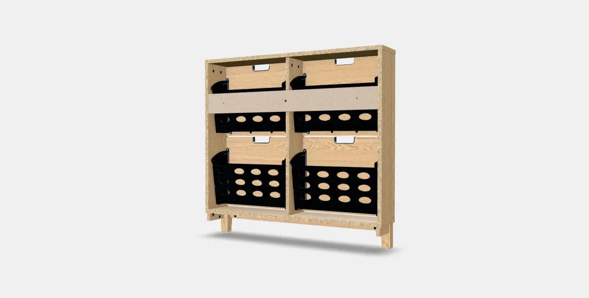 STALL Shoe cabinet with 4 compartments features built-in PBR materials, with no dependency on external renderers or plugins. Easy to start with high-quality visuals and optimized assets!