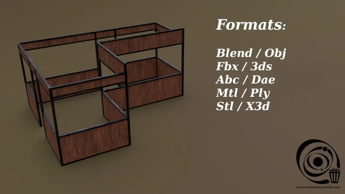 File formats: Blend / Obj / Fbx / 3ds / Abc / Dae / Mtl / Ply / Stl / X3d