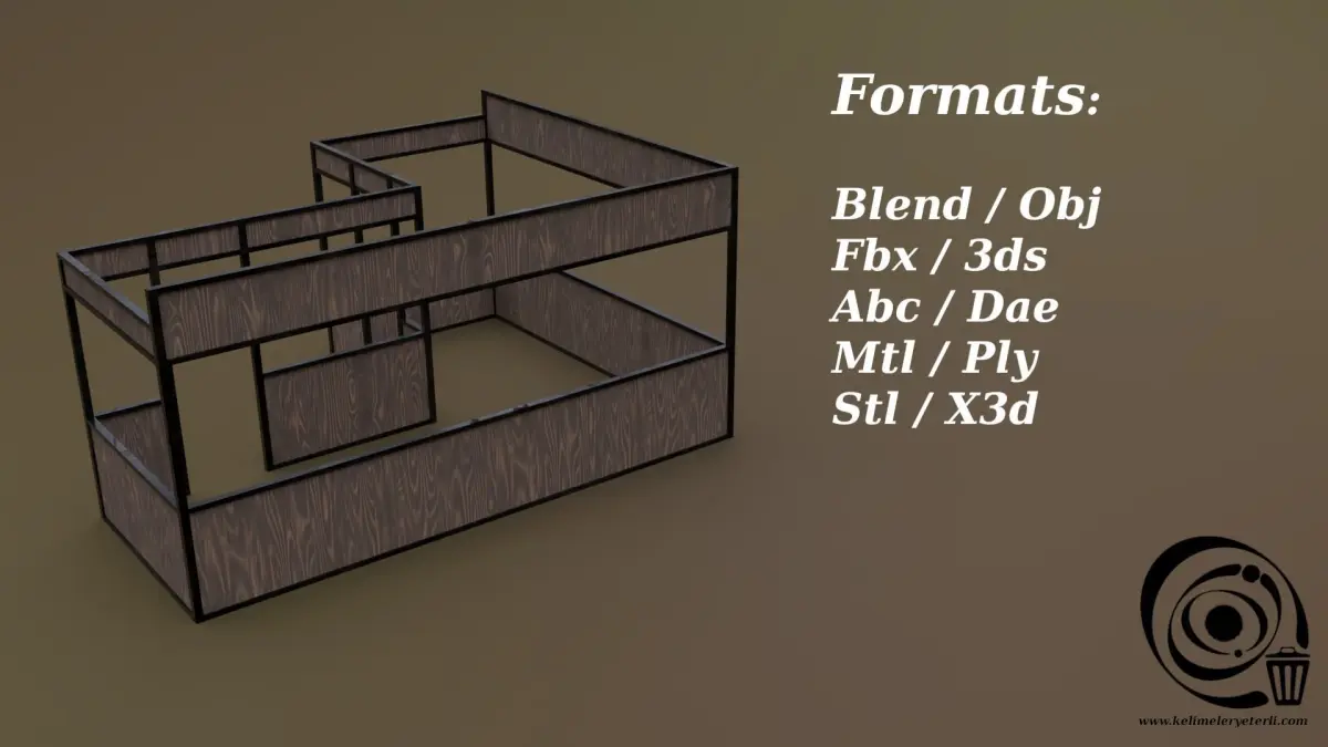File formats: Blend / Obj / Fbx / 3ds / Abc / Dae / Mtl / Ply / Stl / X3d