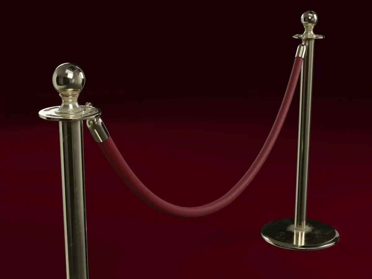 Stanchion and a red velvet rope prop for classy interiors, movie theaters, museums and other such settings. CG and VFX ready high poly subdivision ready model with clean topology. No n-gons, isolated vertices or co-planar faces.