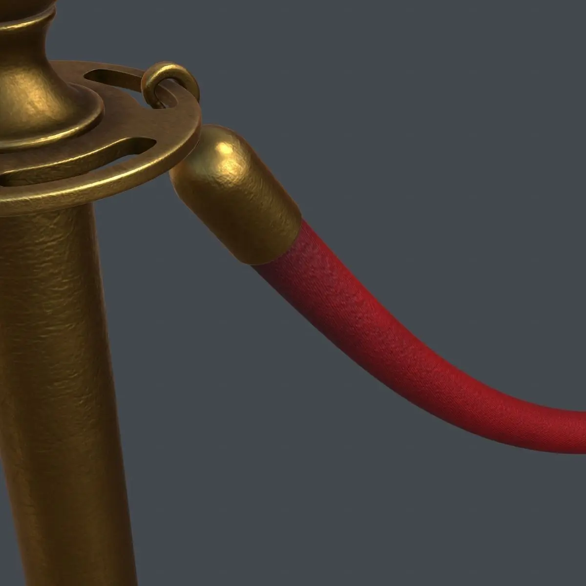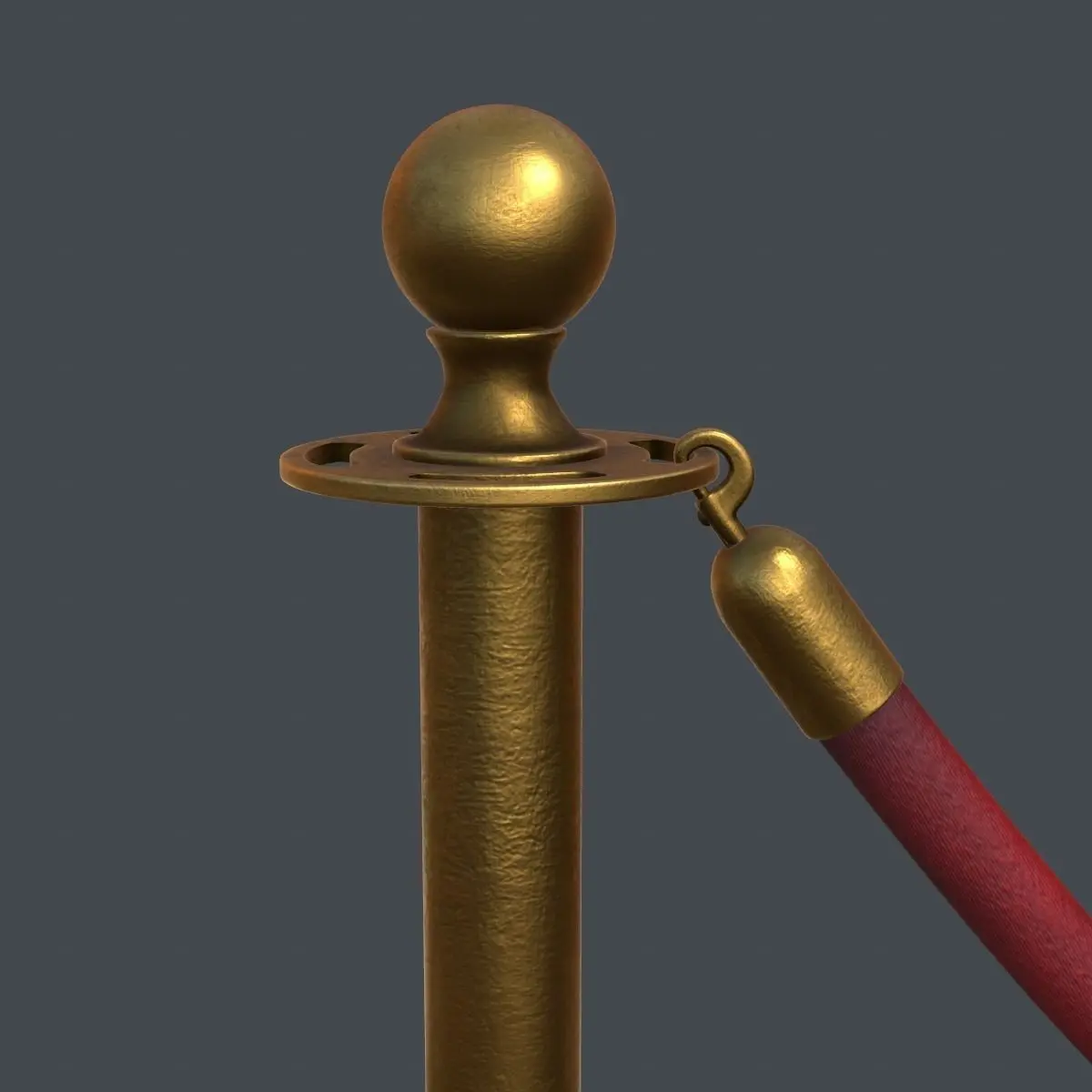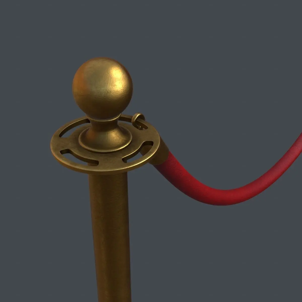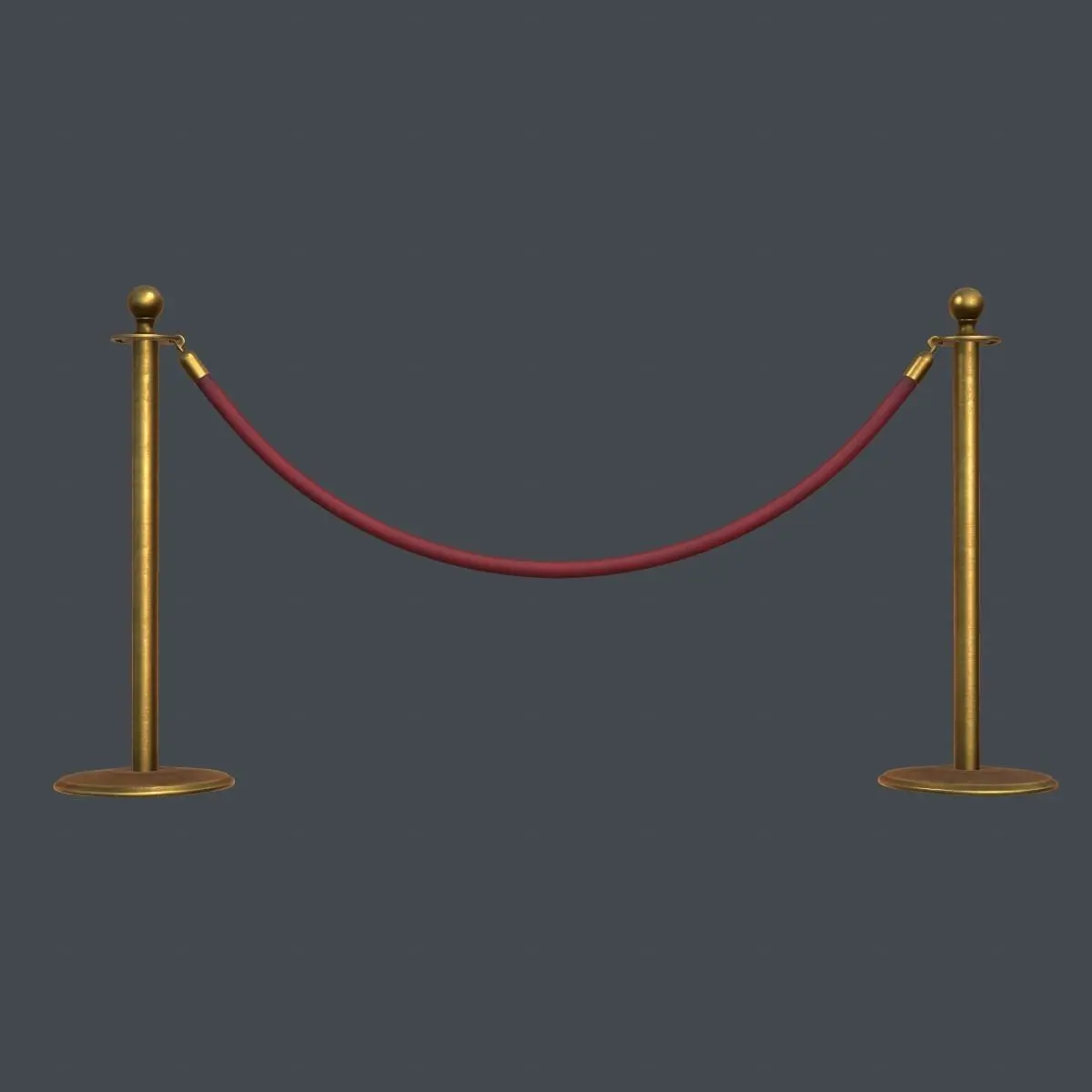 High detail stanchion and velvet rope. Fully unwrapped with mirrored UVs from centre of the rope. Half of the model has non-overlapping UVs. This model can be used for close-up renders.