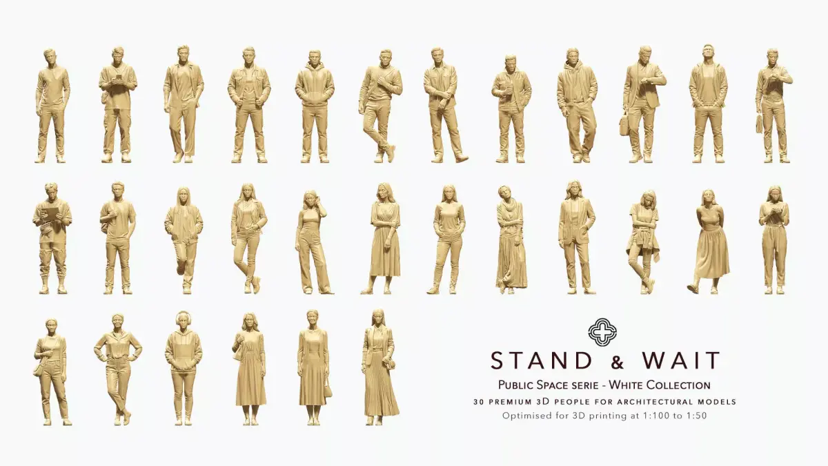 Enhance your architectural visualizations and scale models with this premium pack of 30 3D characters. Part of the Public Space series, this Stand & Wait volume focuses on natural and organic waiting postures. It brings a realistic and lively atmosphere to transit hubs, plazas, and urban projects.