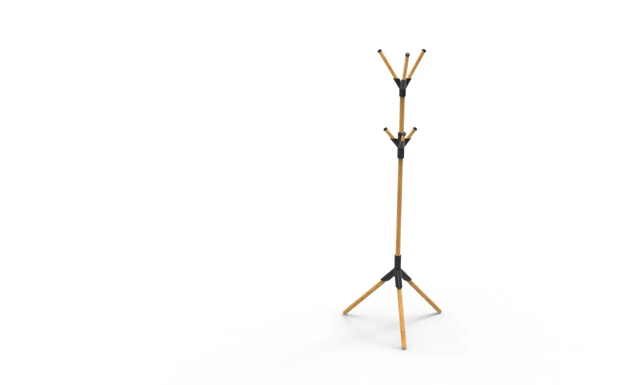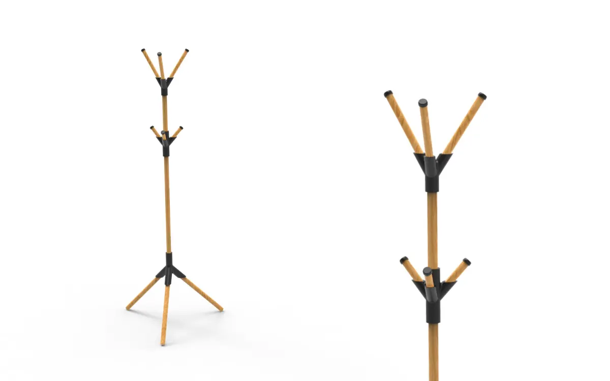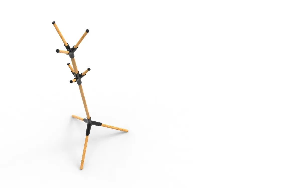 Coat rack for jackets. The coat rack is made of 3D printed joints and 27mm diameter wooden rods. It does not need any kind of screws and the rods fit perfectly into the joints.