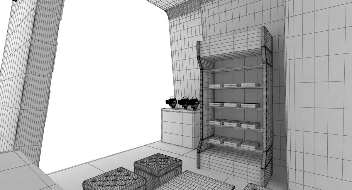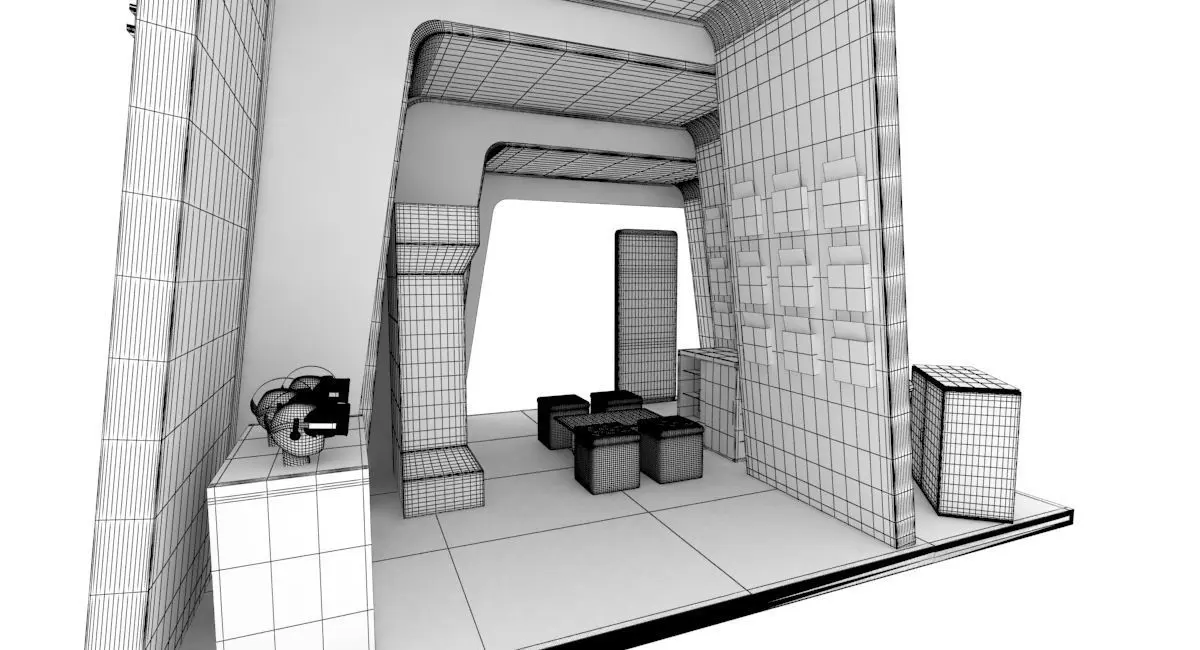 Stand for 3x3m event, with led screens and touch screens, furniture for merchandisign, attention counter