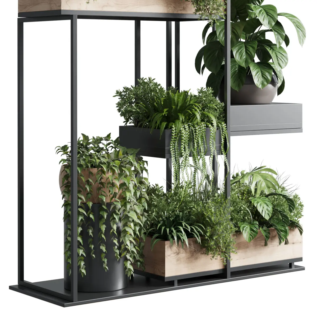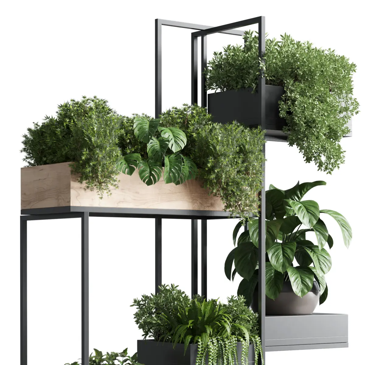 HomeCatalogstand plant box collection Indoor plant wooden and metal vase 3D model