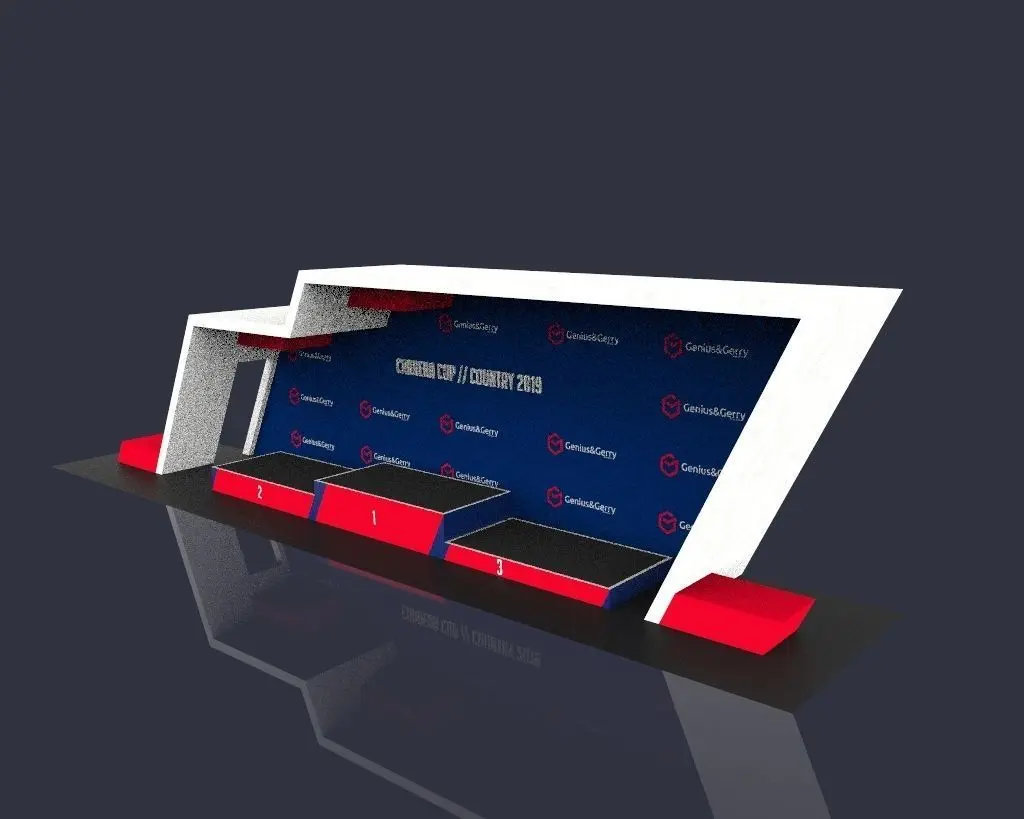 Stand Sport Podium. Commercial banner prepared in low poly for apps, video games and other media.