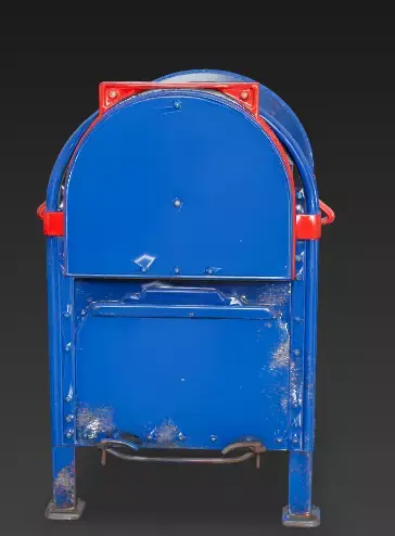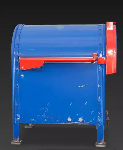 Realistic Street Wear This isn't a factory-fresh mailbox; it shows signs of daily use. You can see white scratches, scuff marks on the front panel, and significant rust patches near the bottom where rain and street grime would naturally collect.