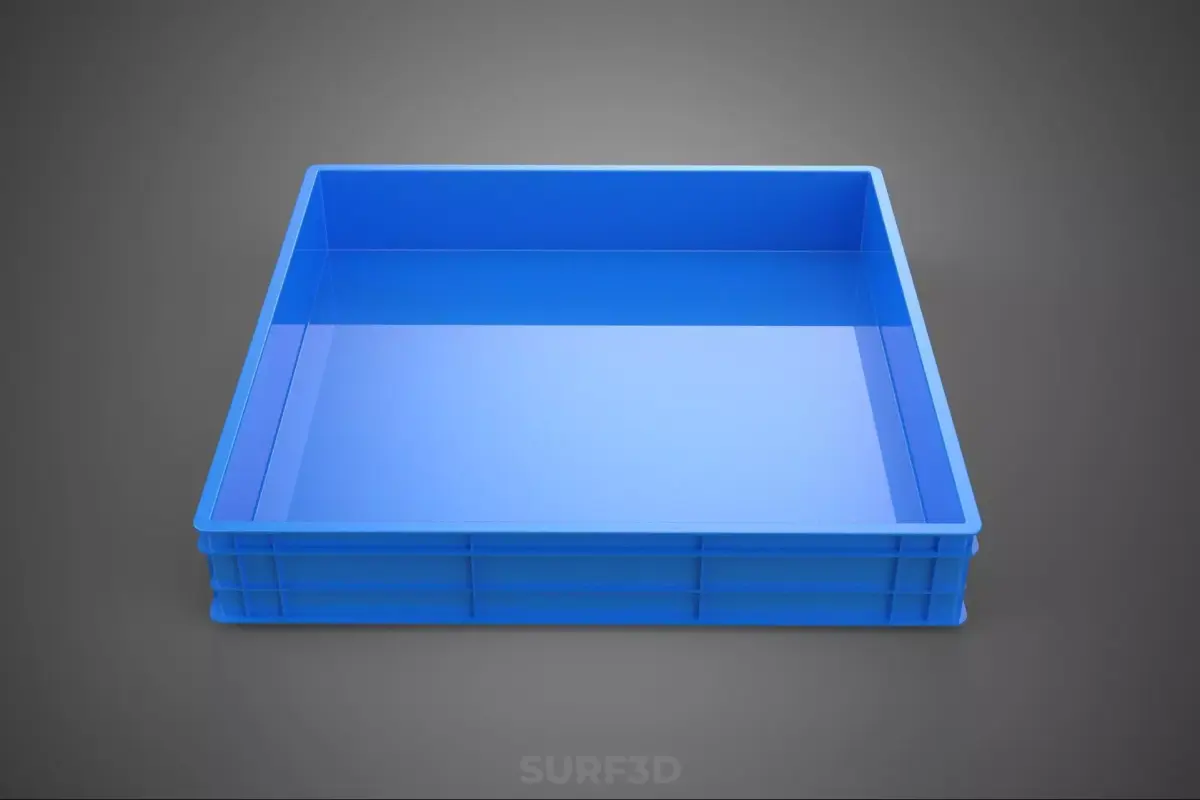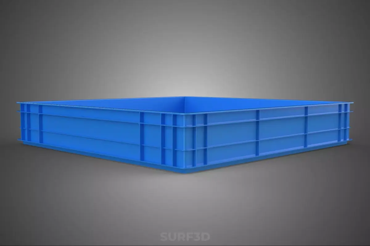 The Standard Square Blue Shallow Pallet Storage Plastic Crate Box is a specialized material handling unit engineered for optimized storage, transport, and inventory management within complex logistical and industrial environments. Formally classified as a rigid logistical receptacle or industrial tote, this object adheres to specific geometric standards to ensure interoperability with automated systems and standardized pallet footprints.