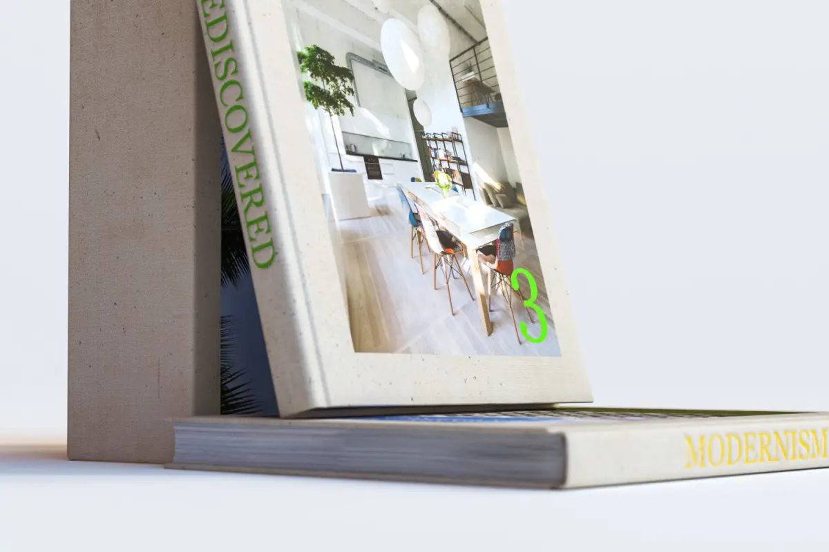 Standing and lying books.The set of three albums with the cardoard case.Model prepared for 3d architectural visualisations and other graphic works.