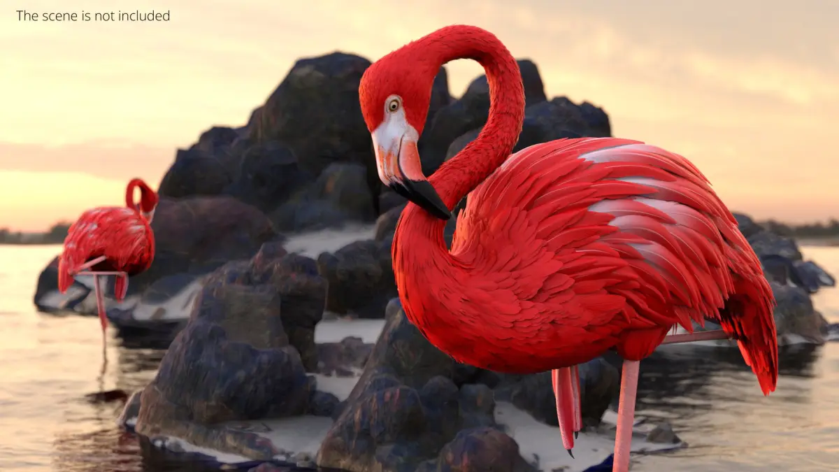 Standing Flamingo Bird on One Leg Red is a high quality, photo real 3d model that will enhance detail and realism to any of your rendering projects. The model has a fully textured, detailed design that allows for close-up renders, and was originally modeled in 3ds Max 2020 and rendered with V-Ray. Renders have no postprocessing!