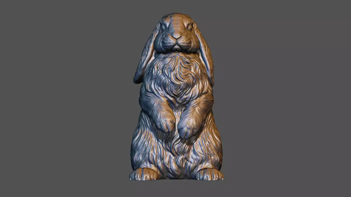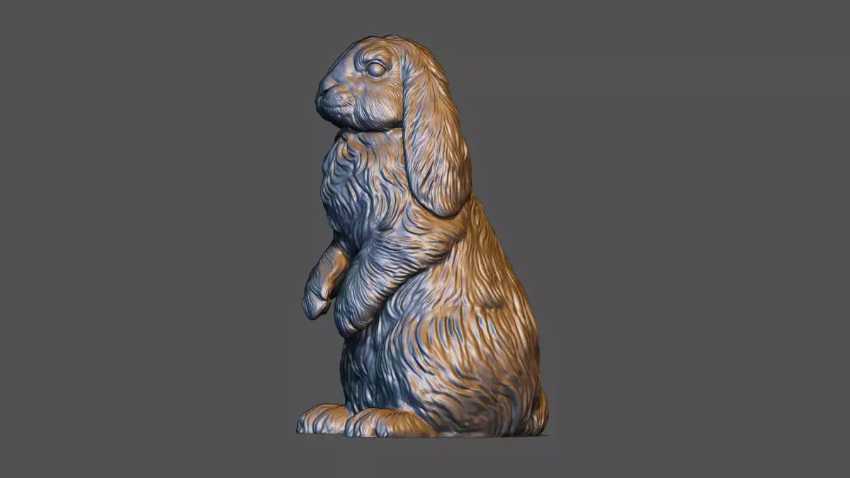 500K STL, OBJ triangulated mesh, Standing Lop Rabbit without a base