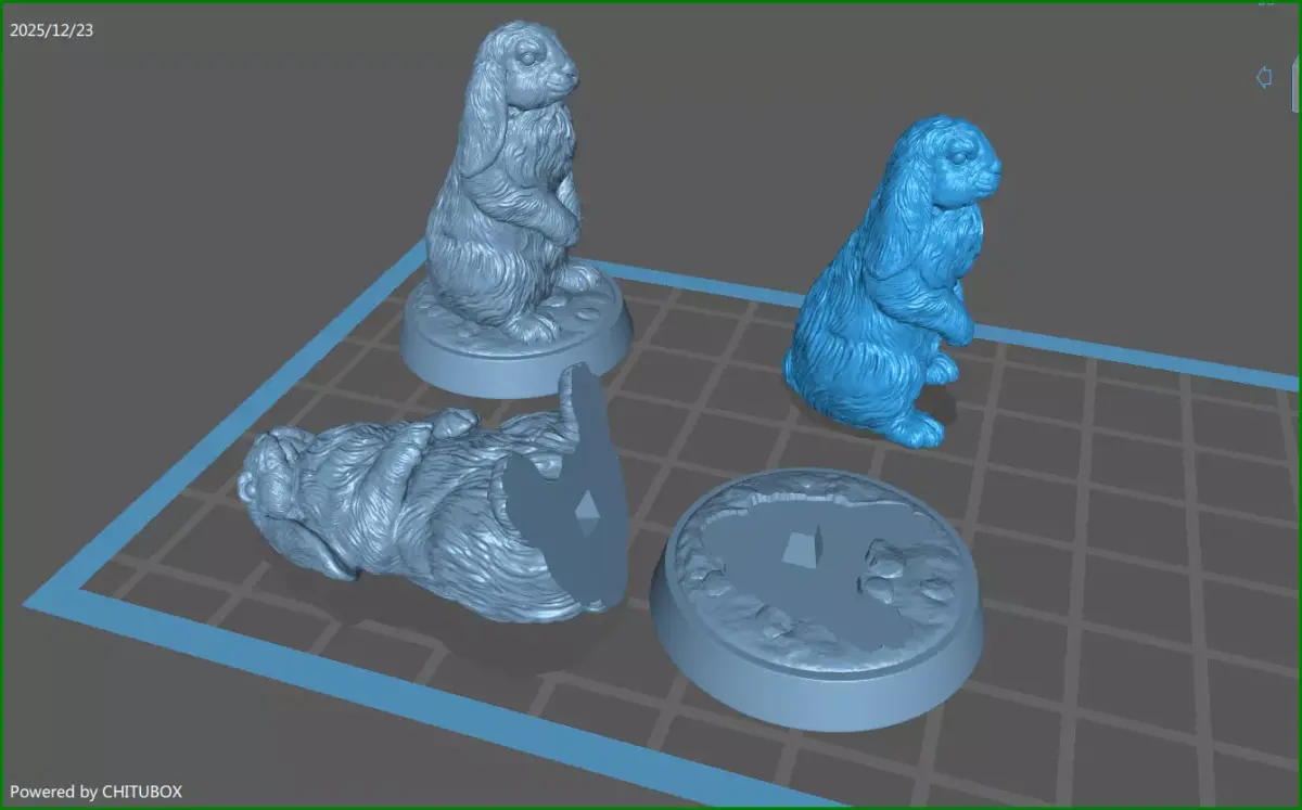 550K STL, OBJ triangulated mesh, Standing Lop Rabbit on the base in parts