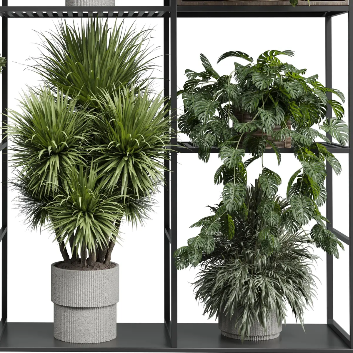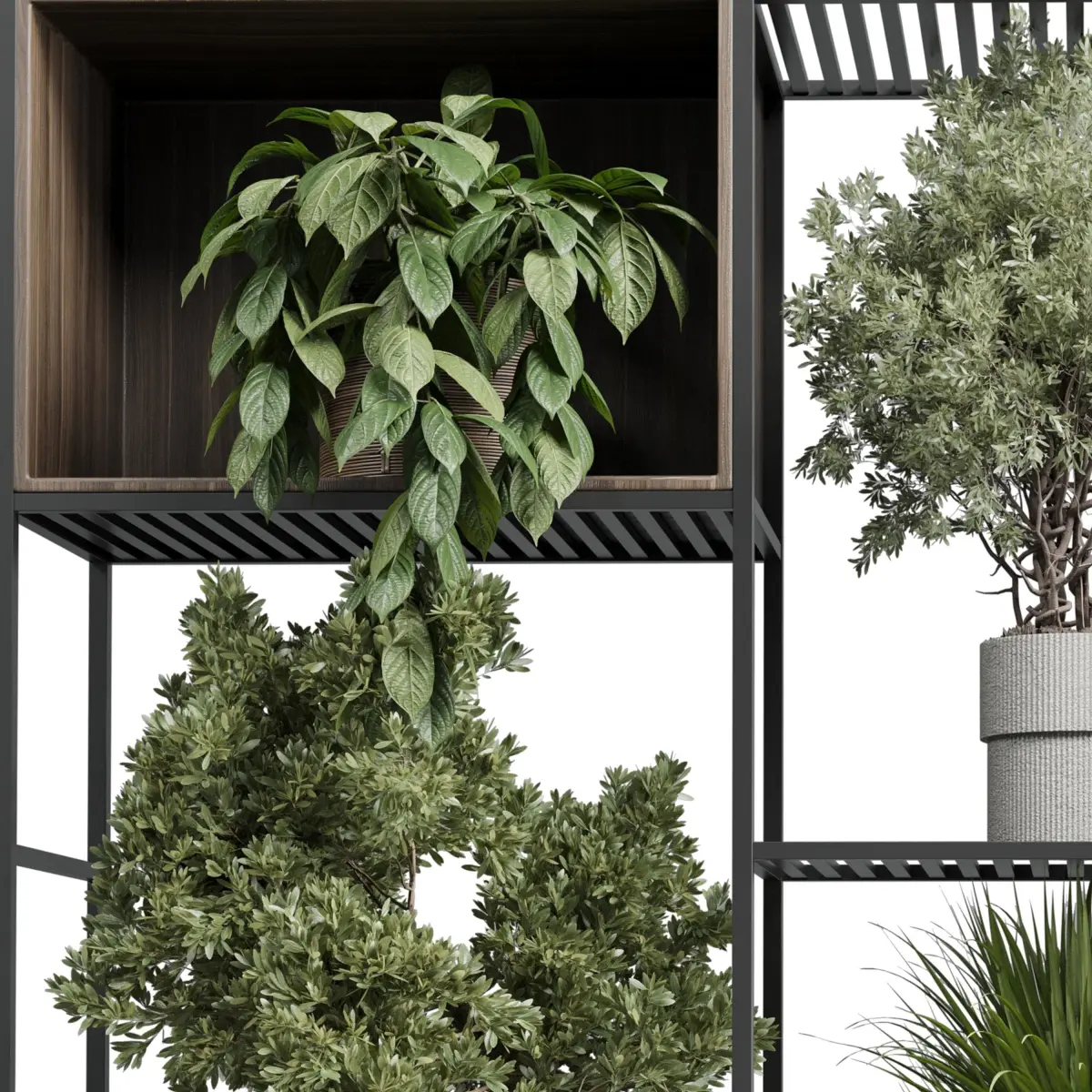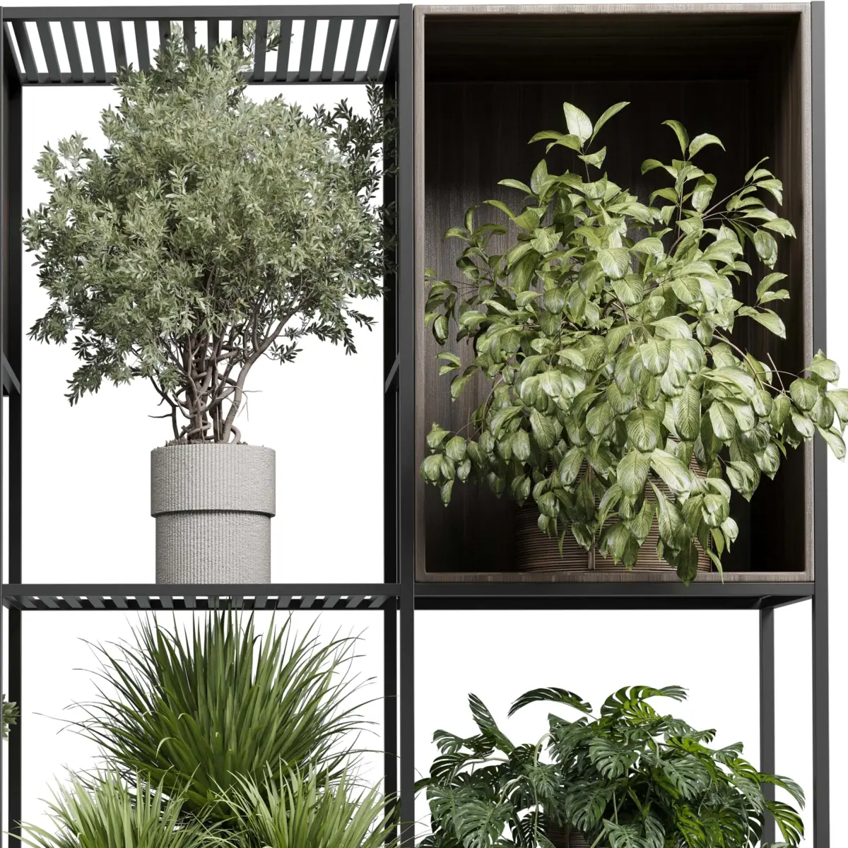 Standing metal shelf with a set of plants in wooden and metal boxes 419.File 3dmax 2015 vray & corona