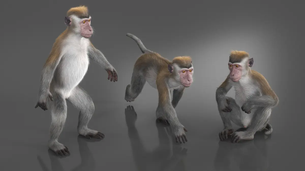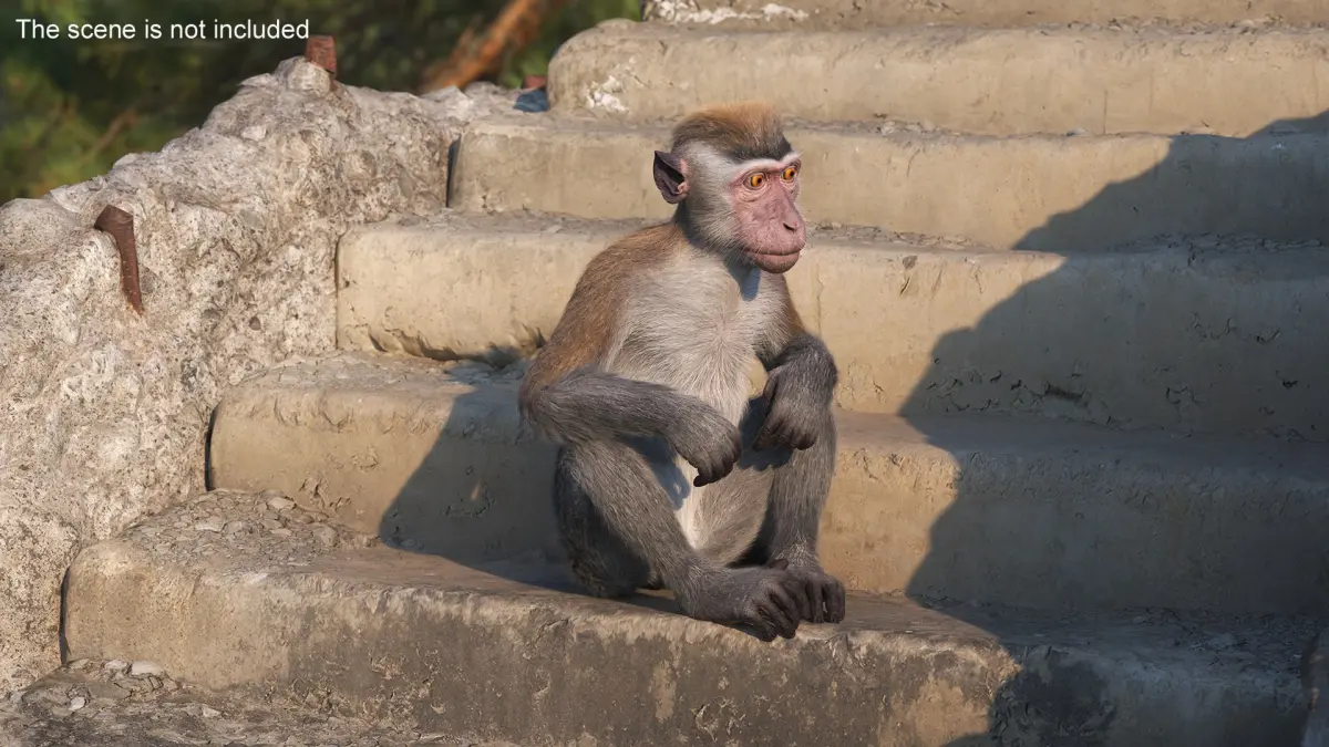 Standing Rhesus Macaque Monkey Gray Fur Rigged is a three-dimensional model of Rhesus macaque (Macaca mulatta or rhesus monkey), that is a species of Old World monkey.