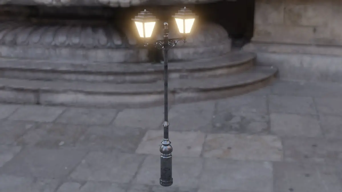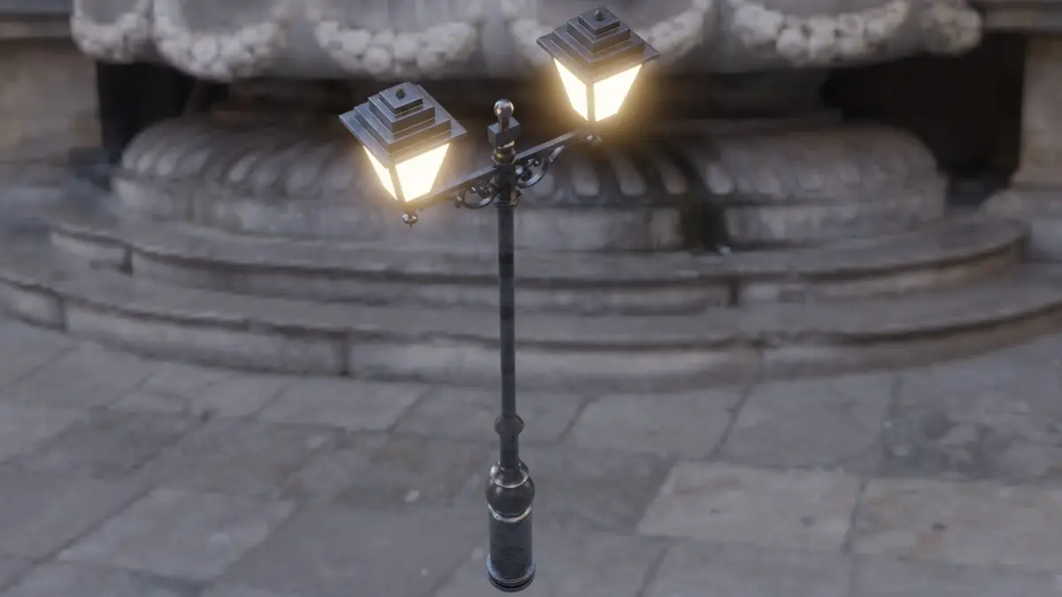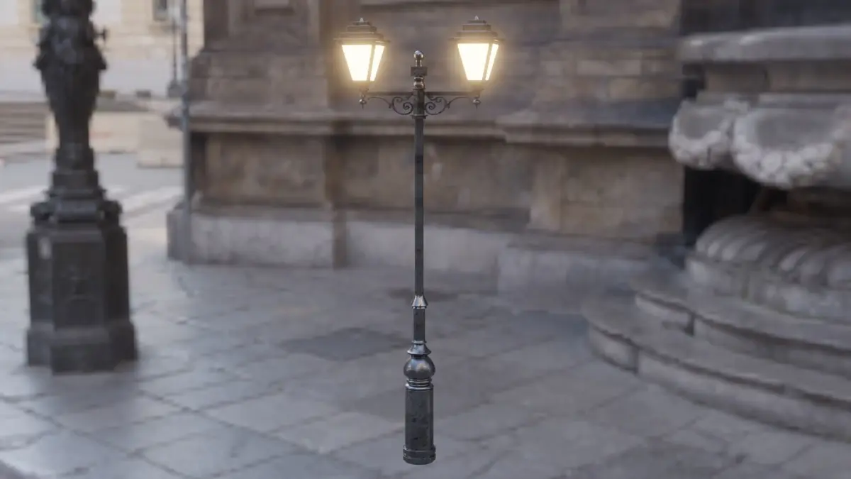 3D model of a standing street lamp.