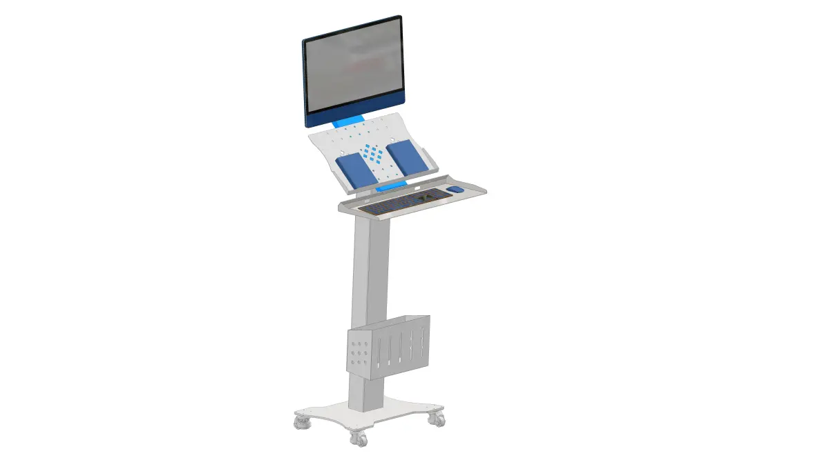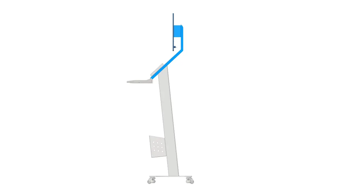 Designed with a metal frame, providing sturdiness and longevity. Flexible display mounting area replaces with different types of screens. screen height 1500 mm, providing a comfortable view when working. spacious keyboard and mouse area, comfortable to operate, 1000 mm height. area for documents, books with dimensions of 500 x 300 mm. 4 flexible wheels help you move easily to different areas, different operating positions in the factory.