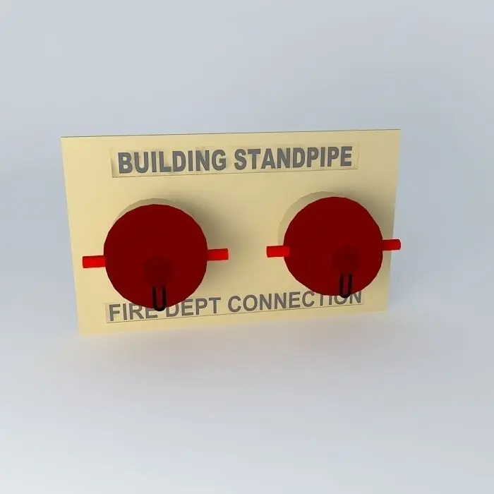 This 3D model was originally created with Sketchup 13 and then converted to all other 3D formats. Native format is .skp 3dsmax scene is 3ds Max 2016 version, rendered with Vray 3.00 A standpipe as found on many buildings. This allows fire departments to pump water to connections in the building, thus avoiding having to bring hoses up stairs or into interior spaces.