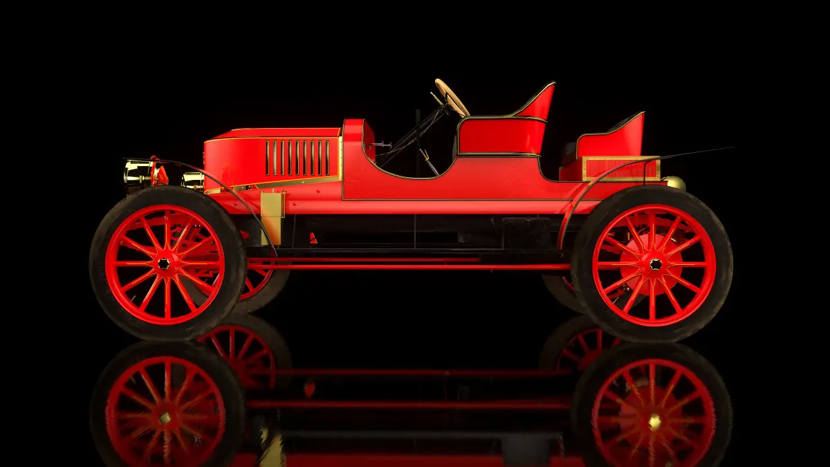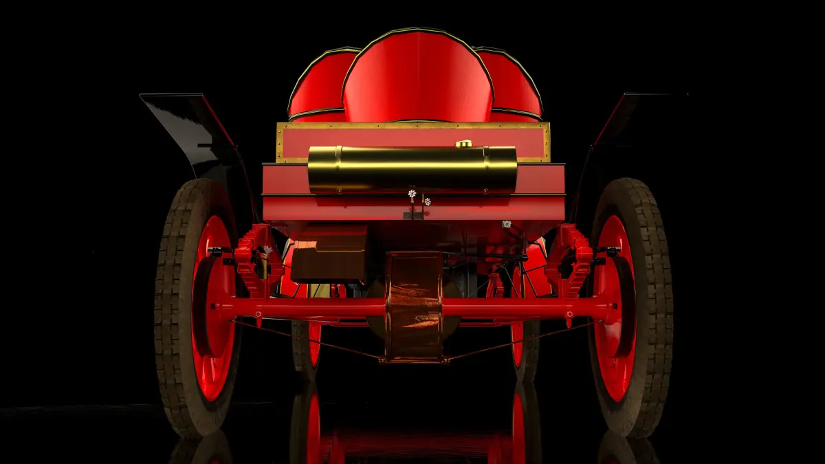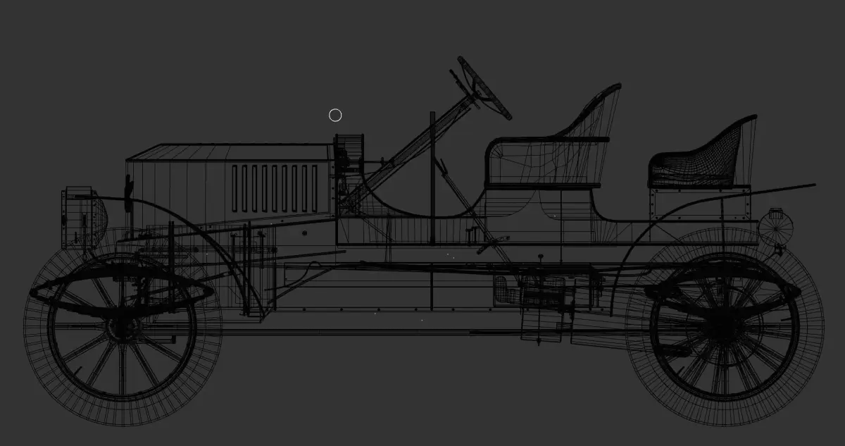 An accurately detailed representation of a 1907 Stanley Model K semi-racer steam car. This has been meticulously modelled from scratch using a real-world reference (pictured).