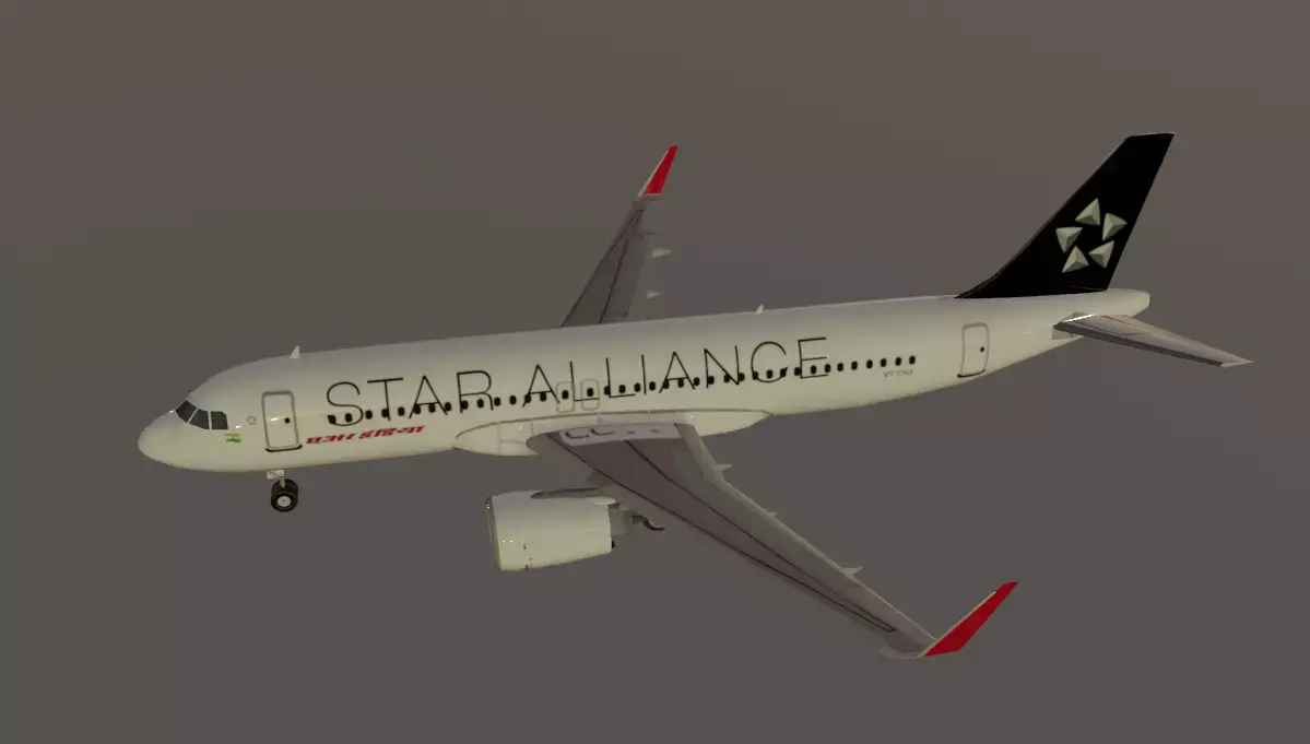 heres a 3D model of this aircraft in Air India's Star alliance livery