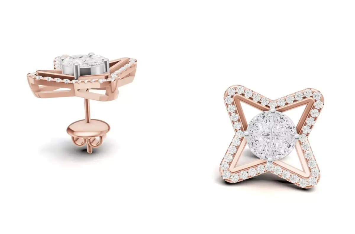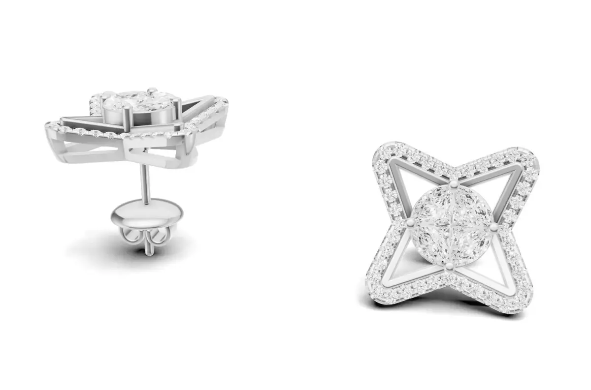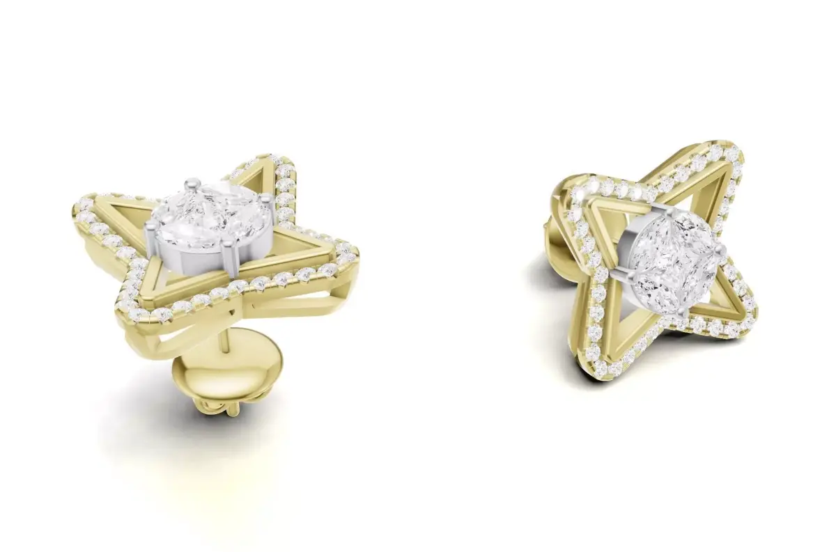 Star Diamond With Cluster Stud Earrings For Women 3D print model