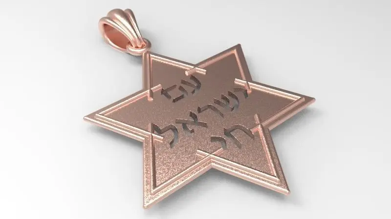 Star of David Pendant with Am Yisrael Chai All dimensions and weight for the pendant are in the pictures. This model was created in Zbrush and has a polygonal geometry. The model's geometry is mesh-based and is not in Rhinoceros Nurbs format. It was imported into a Rhino 3dm file. It is created for 3D printing and is ready for 3D printing production. Please check the pictures for more information.