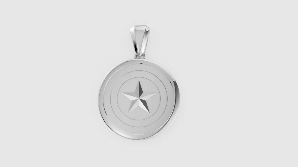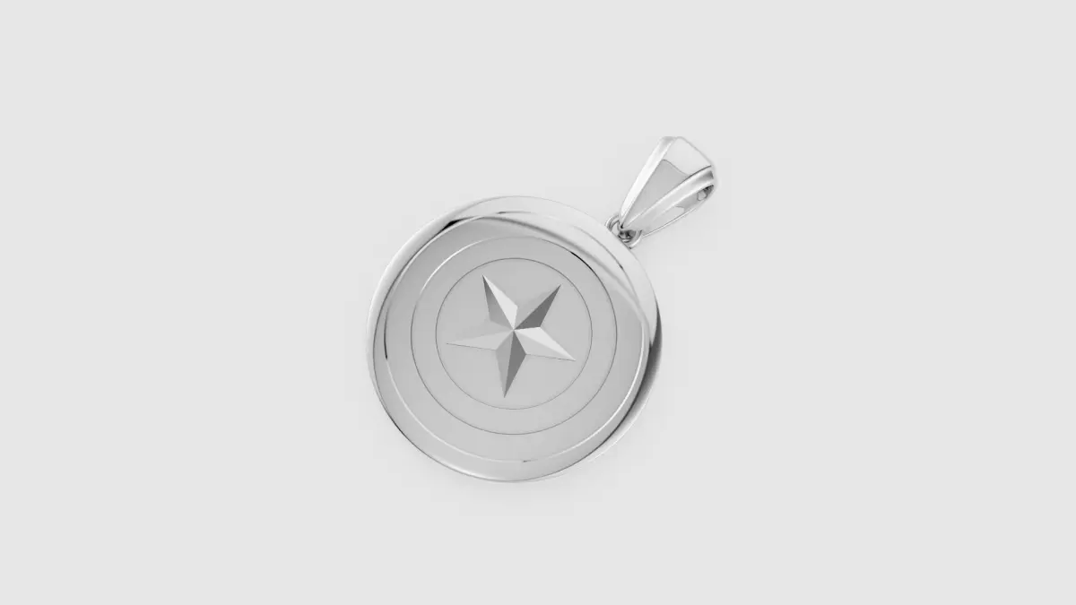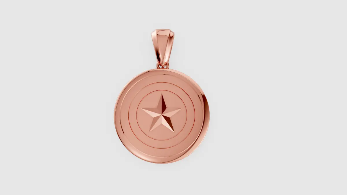 - 3D Model Views (Right Section):Top Left (Front View): Displays the pendant facing front, with dimensions marked: