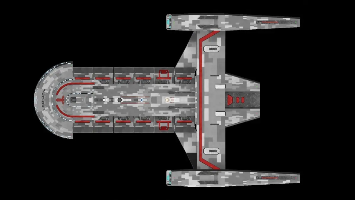 Comes as a packed Blender file with 4096 PBR textures. FBX and OBJ exports are included. Textures are also included as a separate .zip file, including a registry for the USS Li Tieguai, a ship canonical to Star Trek Online..The packed Blender files has the materials set up for rendering in Eevee. The native Blender file also includes animation for the bussards using keyframed and looping nodes.
