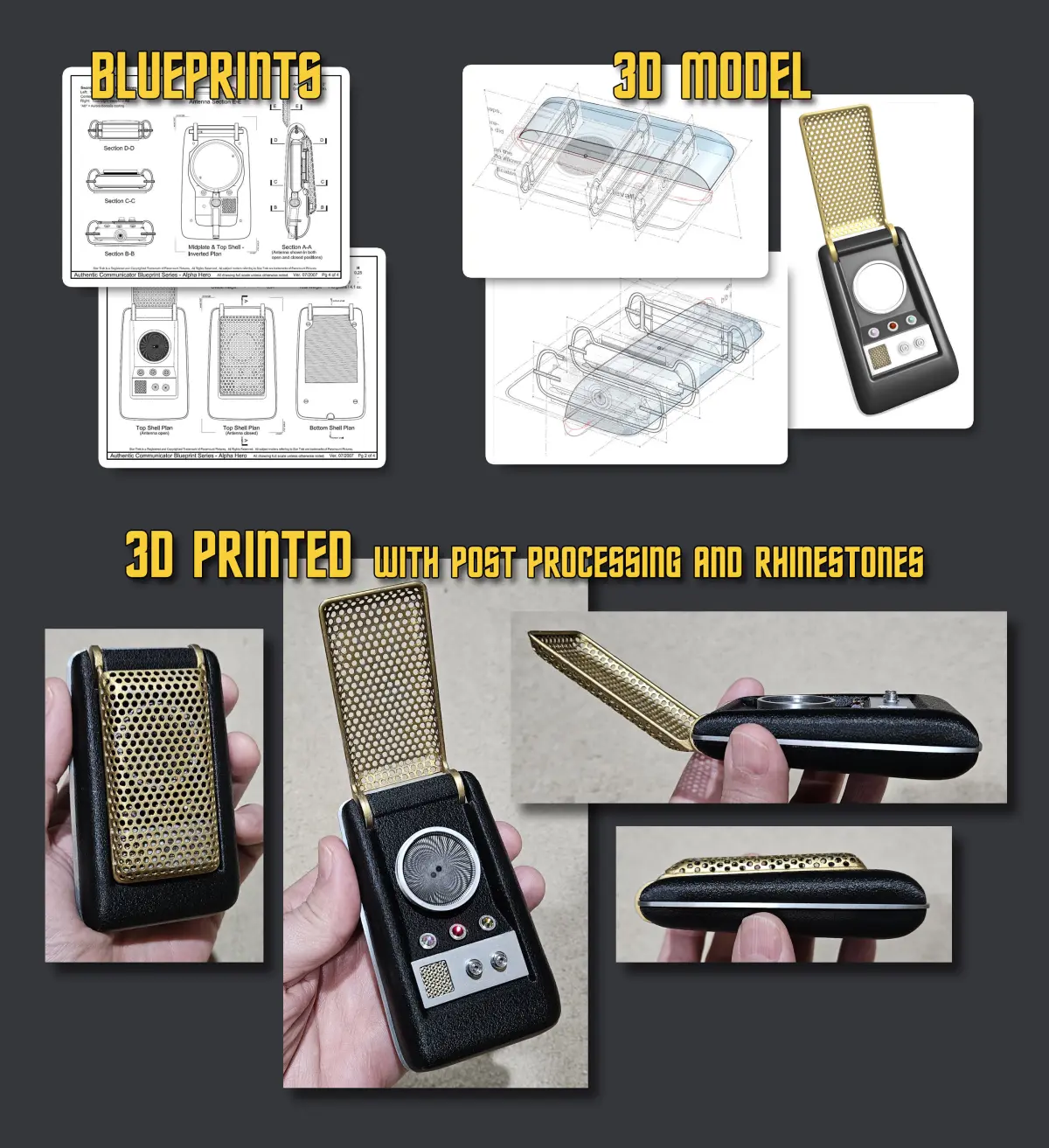 This highly accurate 3D-printable model of the Star Trek: The Original Series Communicator replicates the iconic handheld device in great detail. Modeled from laser scans of original props, its subtle curves and details are faithfully reproduced. A stand is included for stylishly displaying the communicator either open or closed, and clear instructions are provided for easy assembly. This model is great for collectors, cosplayers, or anyone who appreciates Wah Chang's classic design.