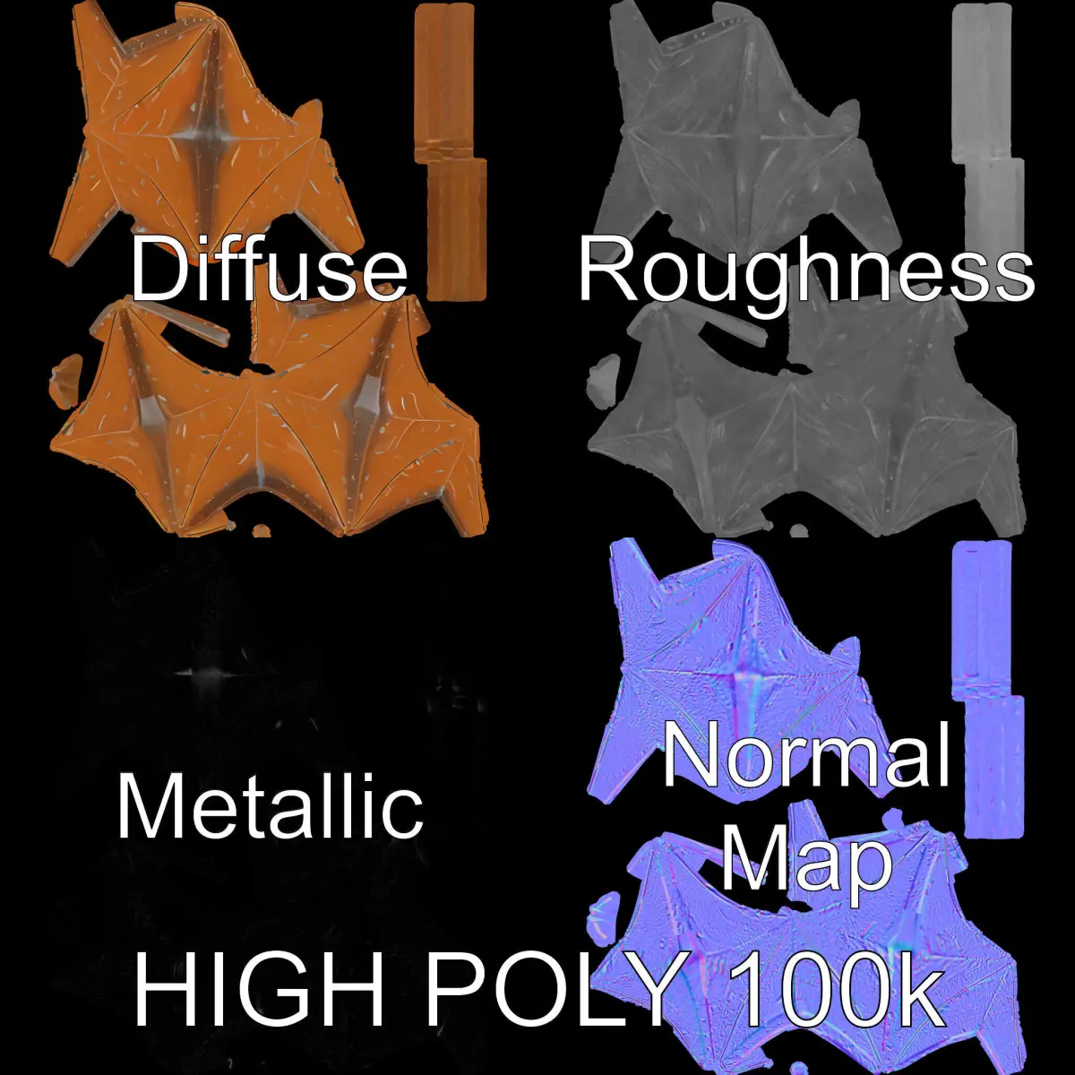 The star wand model pack offers three levels of detail: low-poly (1000 triangles for mobile), middle-poly (10,000 triangles for environment), and high-poly (100,000 triangles) for production rendering in 3ds Max, Maya, Cinema 4D, Blender, Vray, Corona, Cycles, and other engines. Ideal for game engines like Unity and Unreal, interactive presentations, and fantasy projects. This model features PBR textures including Diffuse, NormalMap, and reflection/roughness/metallic, all at 4096*4096 in size. The star wand is accurately unwrapped with no overlapping UVs. Great for fantasy scenes, games, videos, and decor visualization. Please like and comment if you enjoyed this model. The first image is the reference used for creating the 3D model. It is important to carefully evaluate the quality of the model by examining the preview images that display the topology and polygonal mesh. These previews (WIRE and WEB 3D Preview) clearly demonstrate how accurately the model matches the original reference and how well the geometry has been executed.