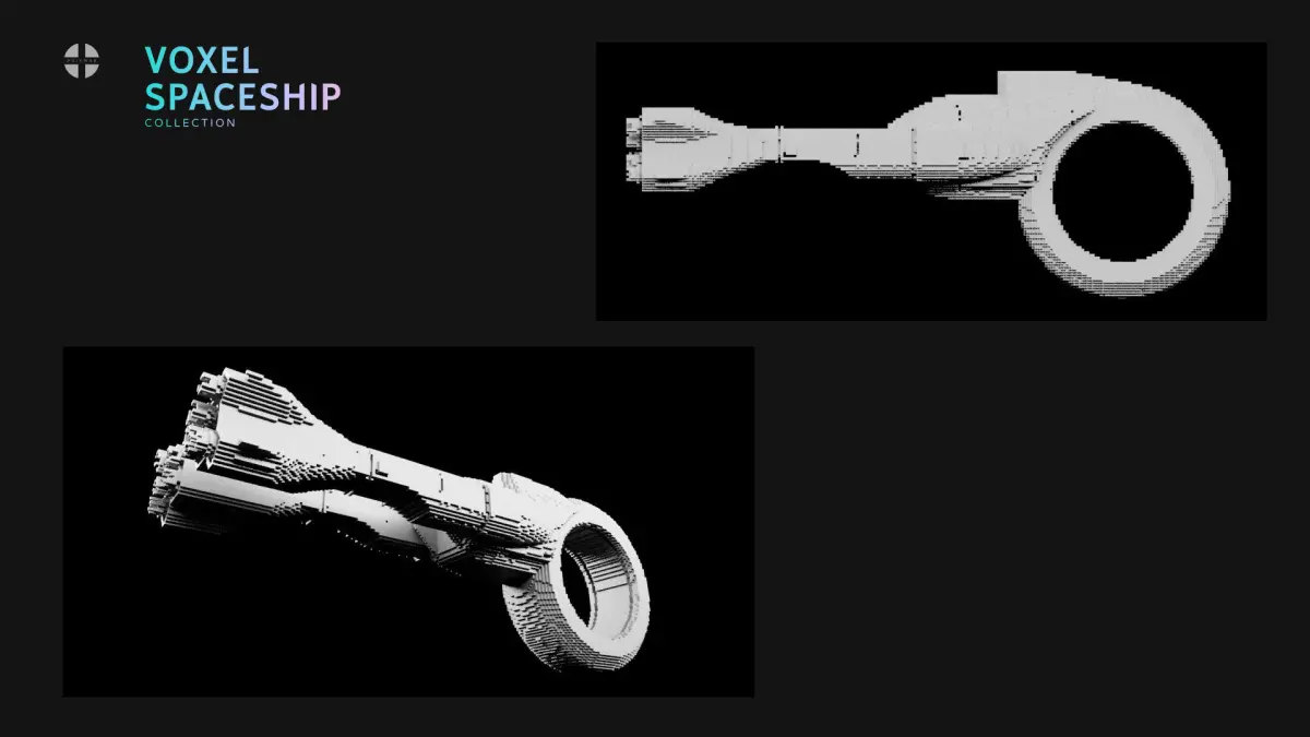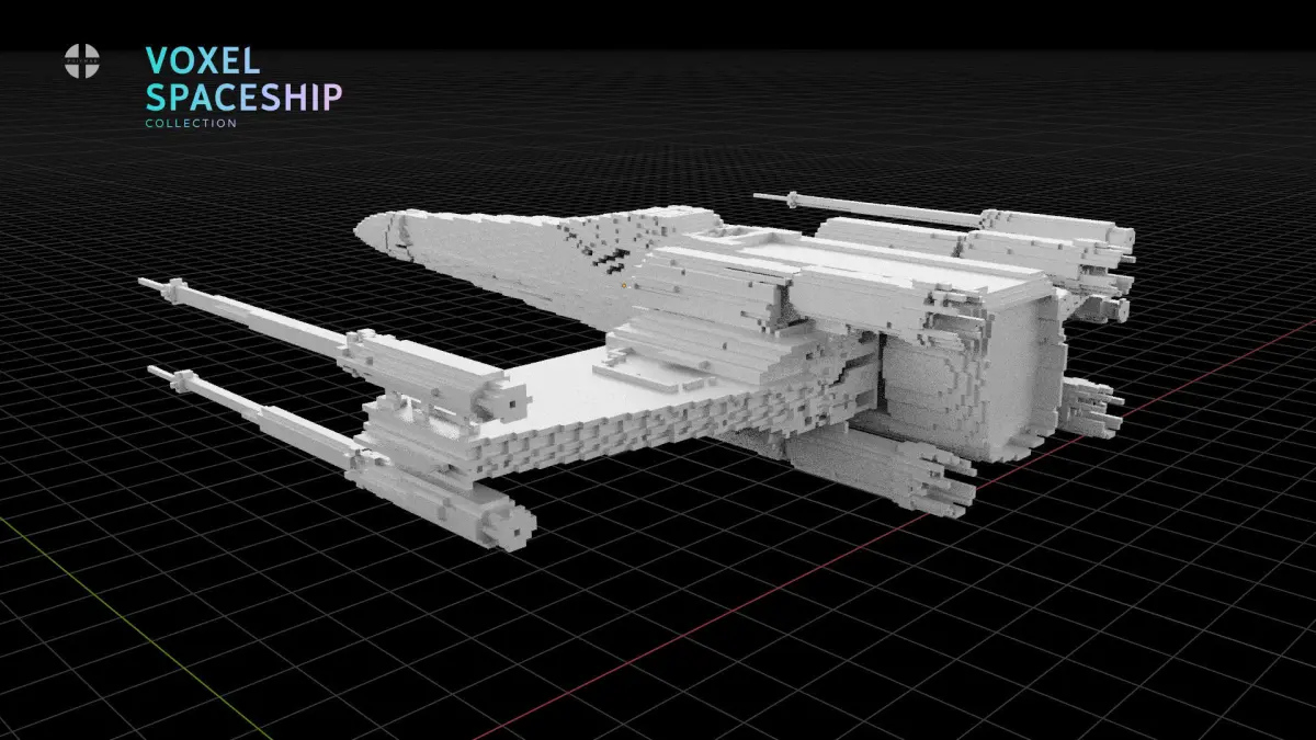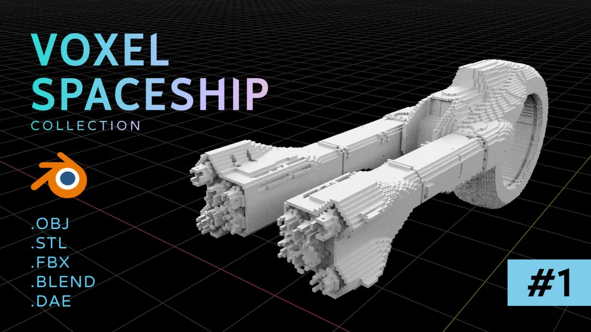 Collection of 3D model of spaceships made in voxel style.