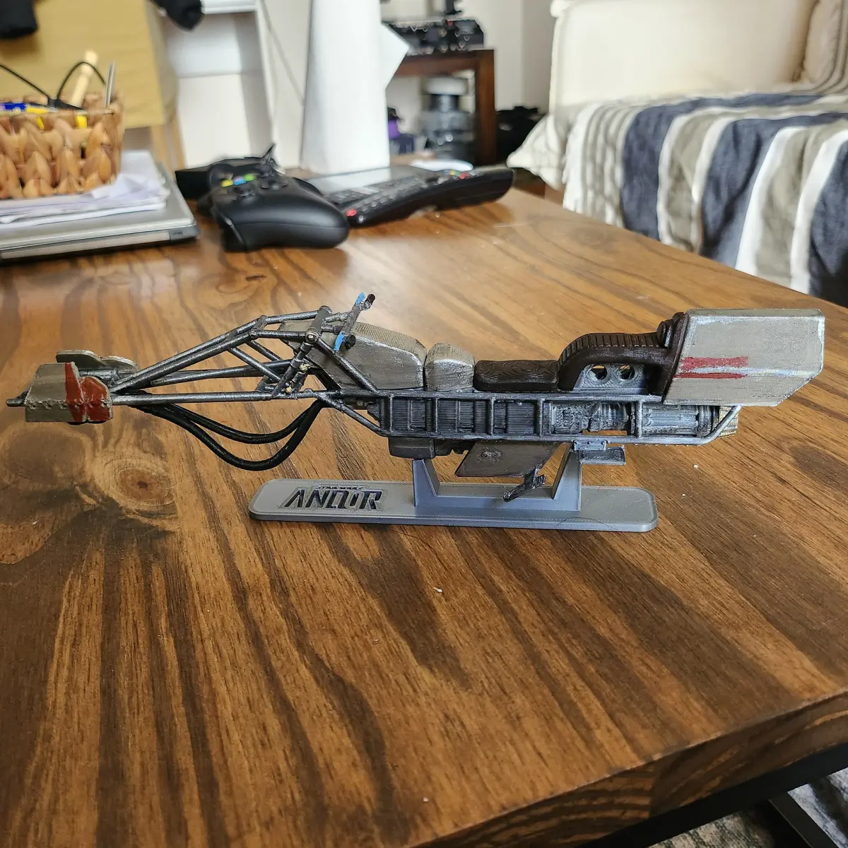 This a fully printable 3D model of the Speeder Bike from the Star Wars Andor show. The model is designed to be as easy to print as possible, and to capture as much detail as I could from what is seen in the show.This is the second version that I create that is much easier to print and assemble. The bike comes also with a stand to showcase it.