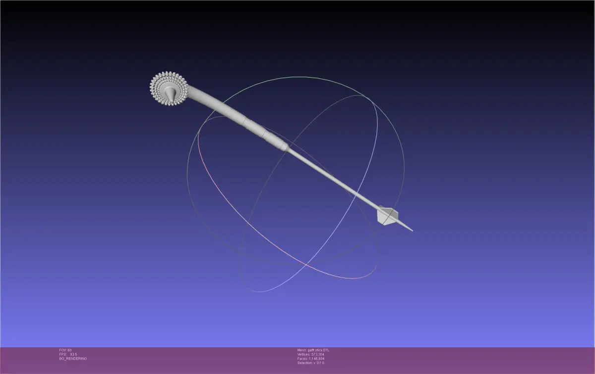 A basic 3d model of the Gaffi Stick used by Boba Fett in the Book of Boba Fett seriesThis includes a full model and one split into 9 parts for easier printing and assembly using 4mm rods
