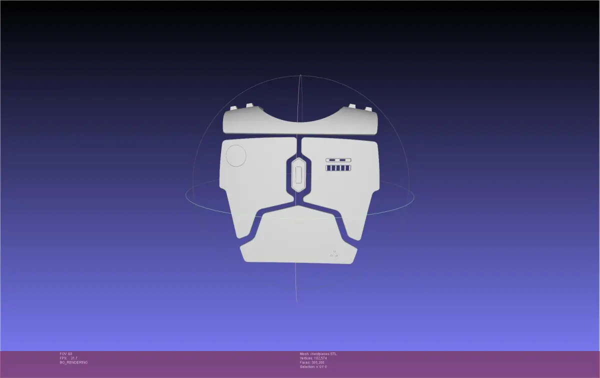 3d-printable models of the chestpieces worn by Boba Fett in the version from the new seriesthe pieces are separate and designed to be attached to fabriceach of them can be scaled to fit and remain well printable