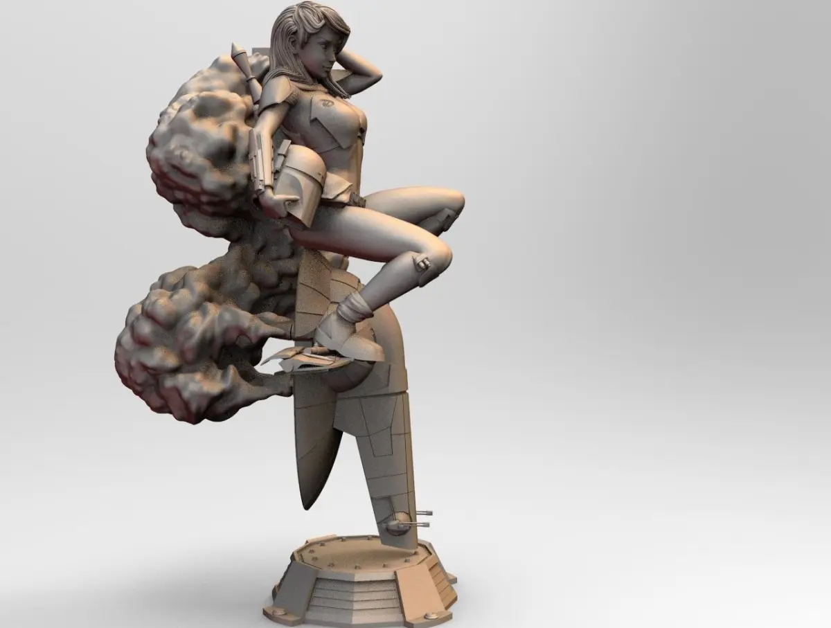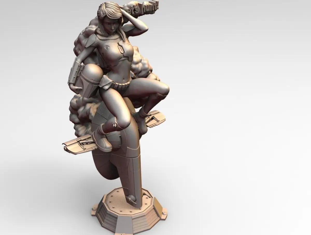 PinUp girl based on Star Wars Mandalorian Bounty Hunter. Entire scene with 30cm of height. Provided full assembled and into parts for easy printing.I suggest to print the base and the ship bottom part with good percentage of infill. 60%or more.