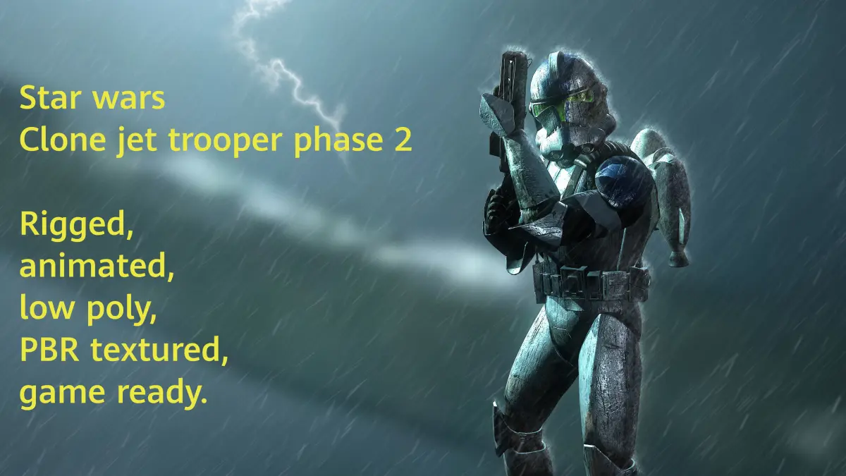 This is my remake of the classic battlefront II jet trooperIt was made in 3ds max , zbrush and painted in substance painter . It is based on the star wars classic battlefront 2 clone jet trooper .