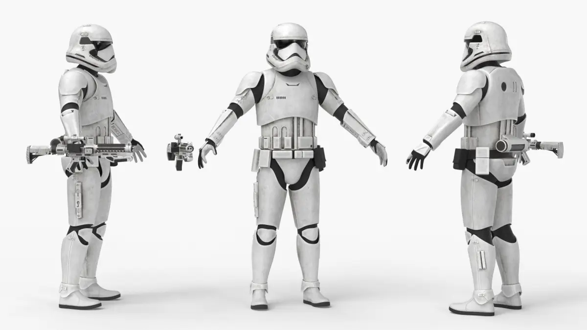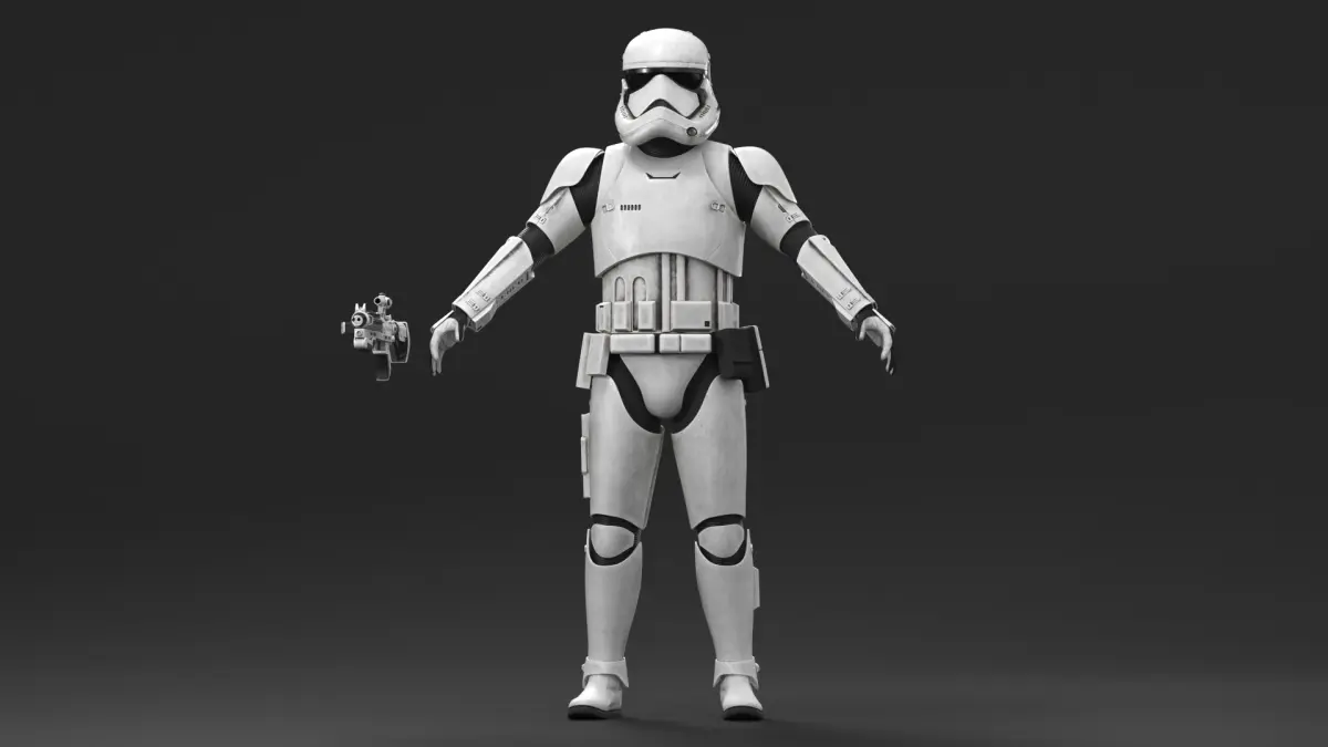 Star Wars First Order Stormtrooper Dirty is a high quality, photo real 3d model that will enhance detail and realism to any of your rendering projects. The model has a fully textured, detailed design that allows for close-up renders, and was originally modeled in 3ds Max 2020 and rendered with V-Ray. Renders have no postprocessing!