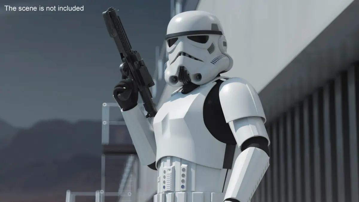 Star Wars Imperial Stormtrooper Raised Blaster Combat Pose is a high quality, photo real 3d model that will enhance detail and realism to any of your rendering projects. The model has a fully textured, detailed design that allows for close-up renders, and was originally modeled in 3ds Max 2020 and rendered with V-Ray. Renders have no postprocessing!