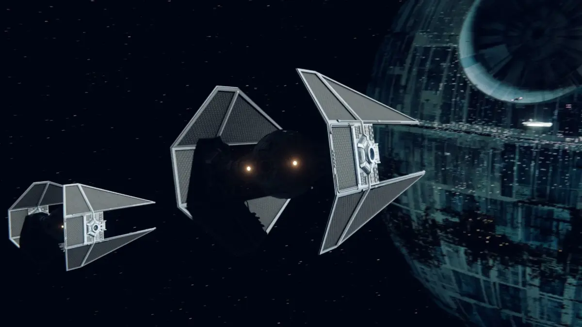 Detailed model of a Star Wars original trilogy era Imperial TIE Interceptor, including pilot.