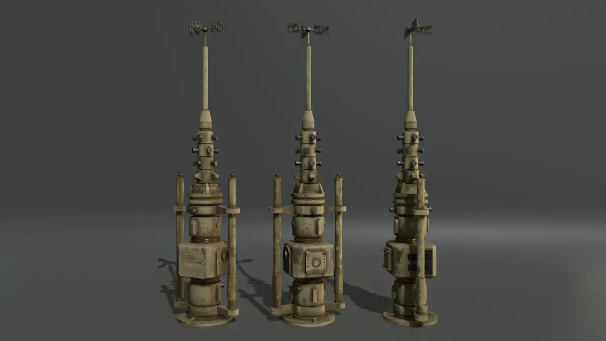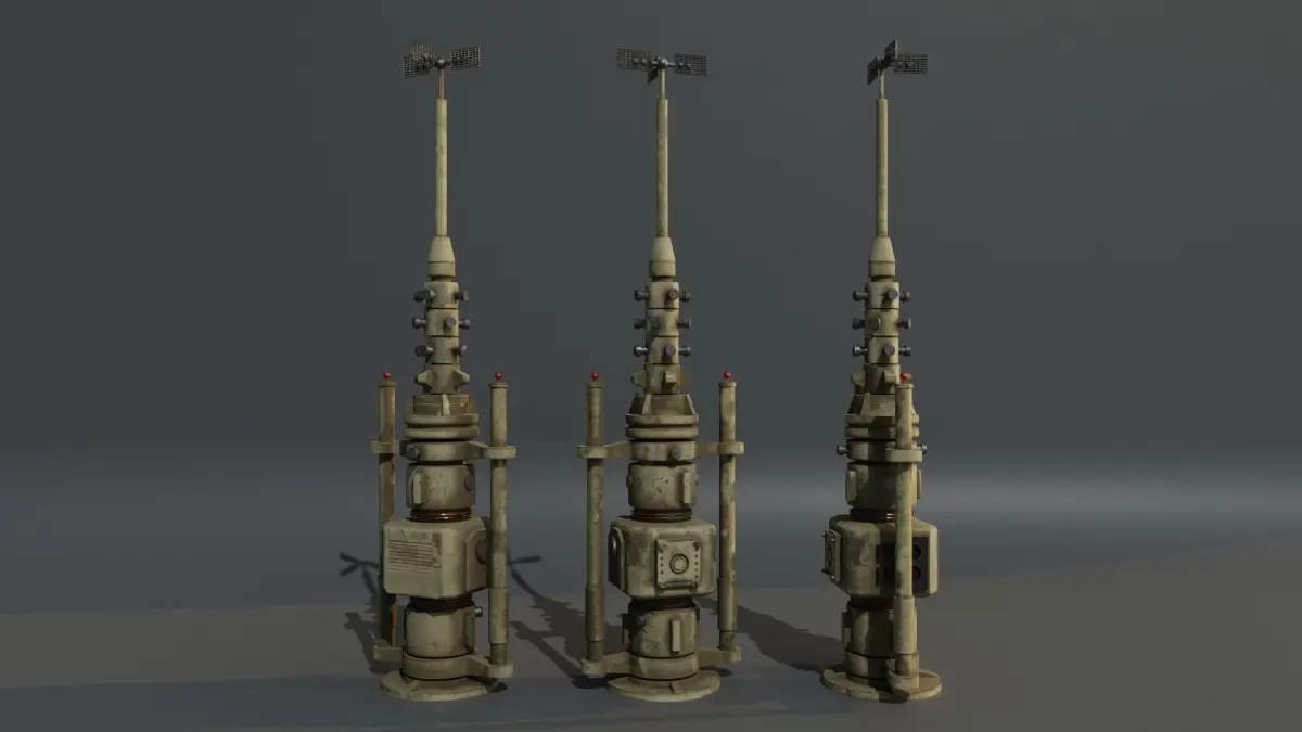 A detailed model of a moisture vaporator. The vaporator was a device used to harvest excess atmospheric humidity in the Star Wars universe on planets such as Tatooine but can be found on numerous other worlds.