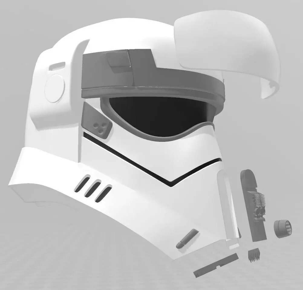 First Order Mountain Trooper was originally designed for use in Galaxy's Edge parks for guest interaction but sadly never saw the light of day. This helmet should be 501st approvable with proper finishing work and meets all CRL requirements for the hard armor pieces. This listing is just the helmet files.