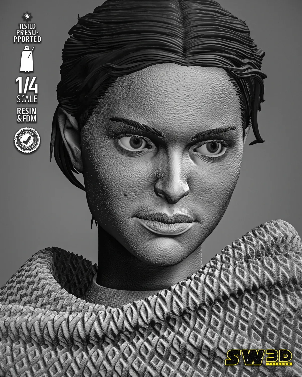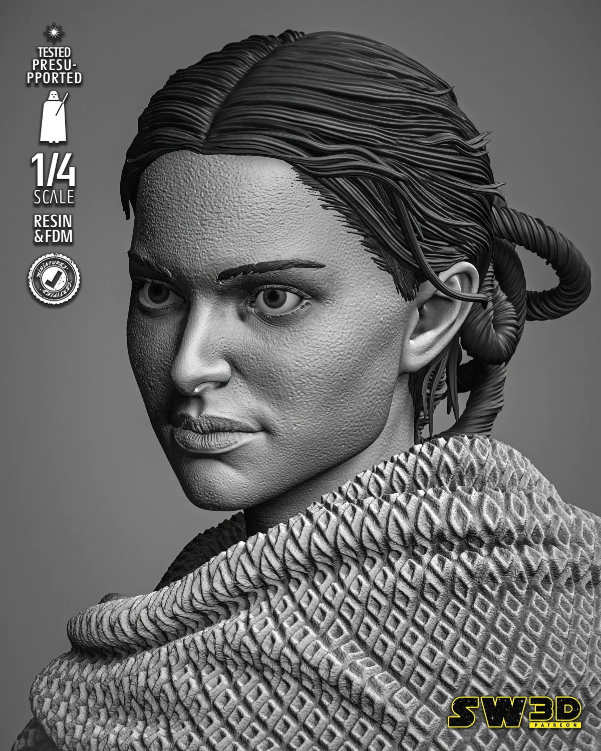 Padme Portrait Bust is based on the Star Wars Universe. Fan Art Model (1/4 scale approx) Tested and is ready for 3D printing!