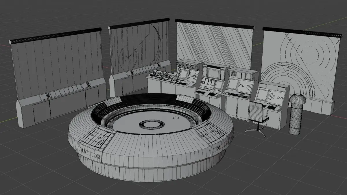 A prop pack composed of props from the Rebel Alliance war room inside the temple on Yavin IV. Composed of 4 map consoles, 1 Holo-tank, 1 light stand, 1 chair, and 6 terminals.