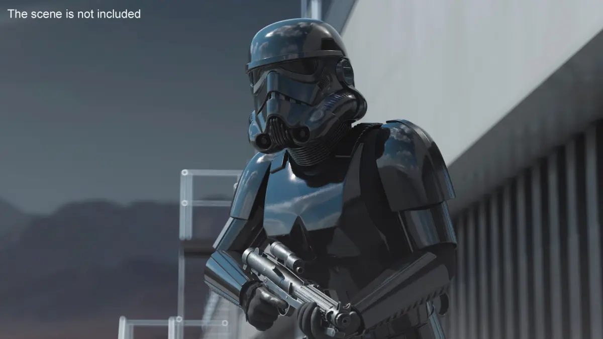 Star Wars Shadow Trooper Running with Blaster is a high quality, photo real 3d model that will enhance detail and realism to any of your rendering projects. The model has a fully textured, detailed design that allows for close-up renders, and was originally modeled in 3ds Max 2020 and rendered with V-Ray. Renders have no postprocessing!