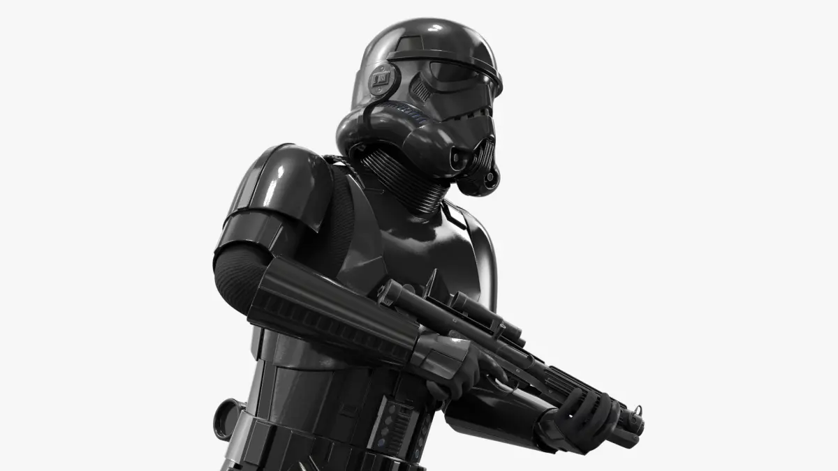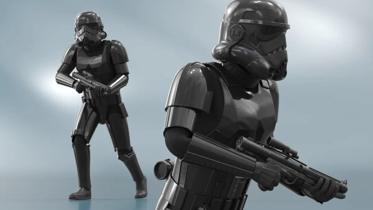 Star Wars Shadow Trooper Running with Blaster is a three-dimensional model of Star Wars Imperial stormtrooper character in the futuristic military uniform, recognized for its sleek design and functional features, popular in sci-fi narratives.