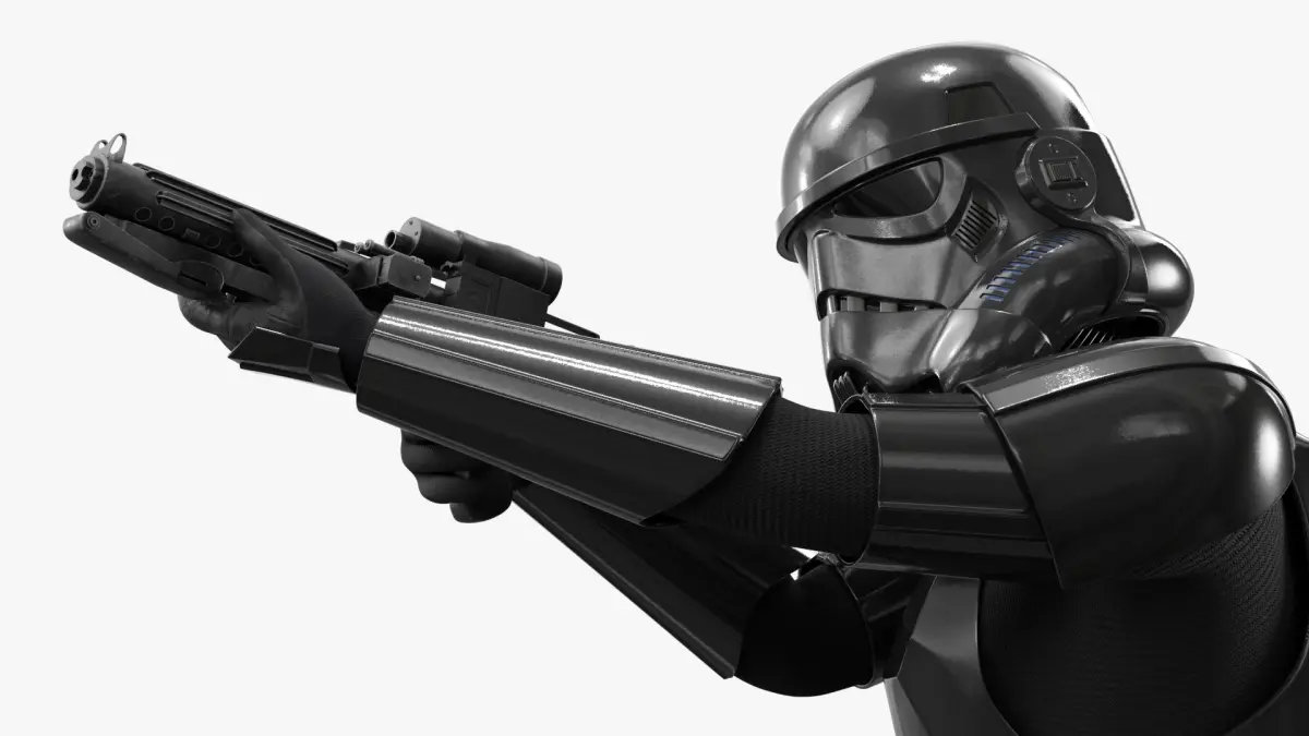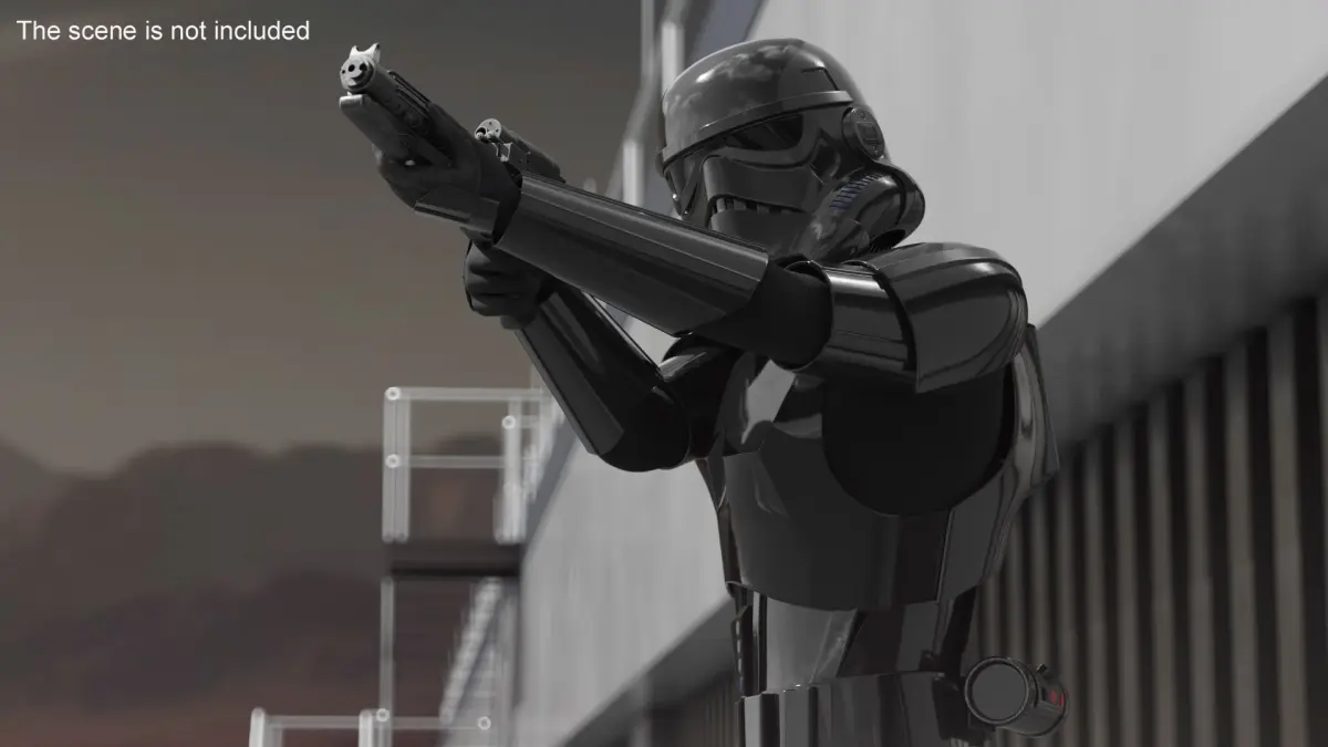Star Wars Shadow Trooper with Blaster Shooting Pose is a three-dimensional model of Star Wars Imperial stormtrooper character in the futuristic military uniform, recognized for its sleek design and functional features, popular in sci-fi narratives.