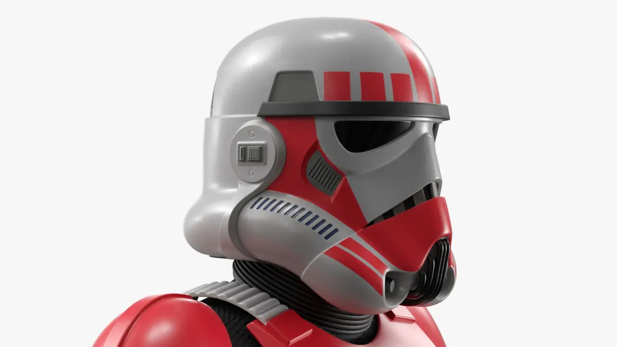 Star Wars Shock Trooper A-Pose is a three-dimensional model of elite variant of clone trooper from the Star Wars universe, known for their red-striped armor and military police role within the Galactic Republic.